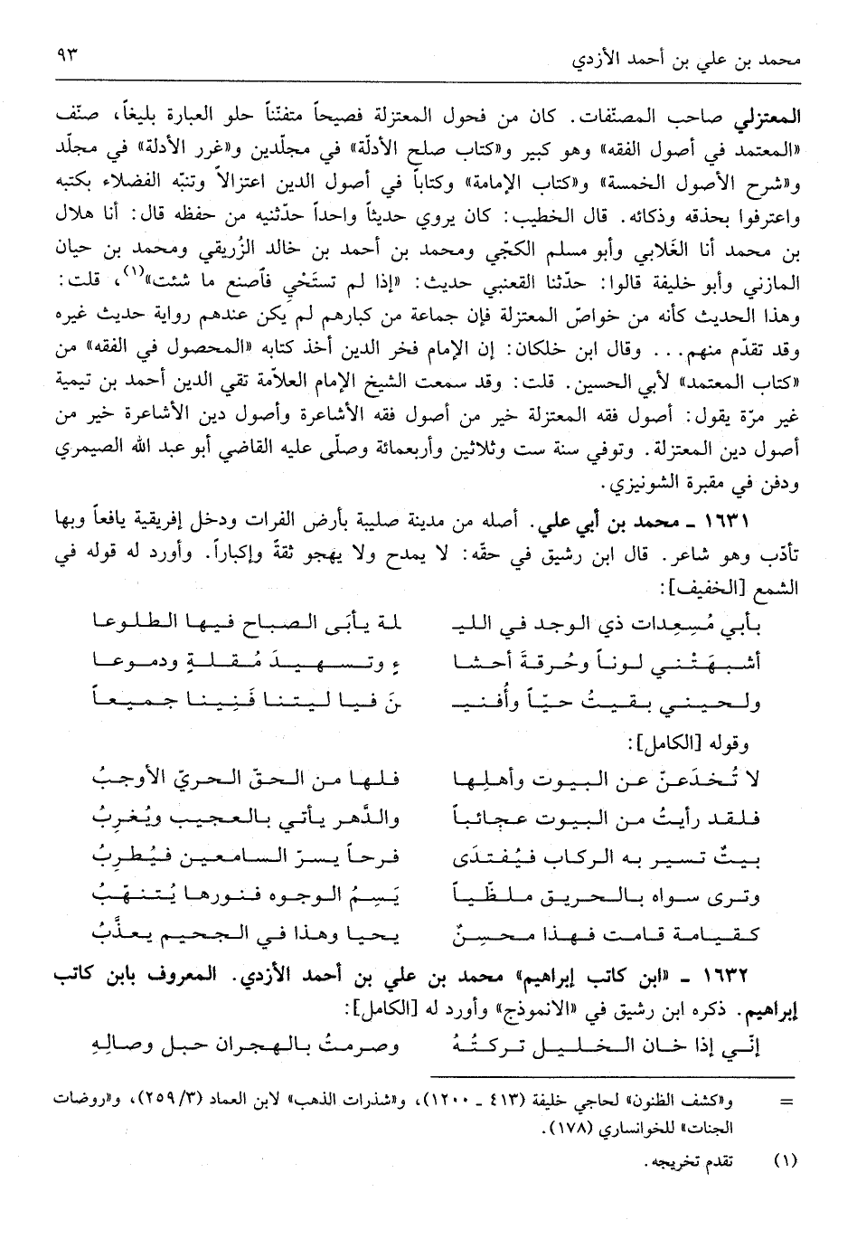كَانَ من فحول الْمُعْتَزلَة فصيحاً متفنناً حُلْو الْعبارَة بليغاً صنف الْمُعْتَمد فِي أصُول الْفِقْه وَهُوَ كَبِير وَكتاب صلح الْأَدِلَّة فِي مجلدين وغرر الْأَدِلَّة فِي مُجَلد وَشرح الْأُصُول الْخَمْسَة وَكتاب الْإِمَامَة وكتاباً فِي أصُول الدّين اعتزالاً وتنبه الْفُضَلَاء بكتبه واعترفوا بحذقه وذكائه