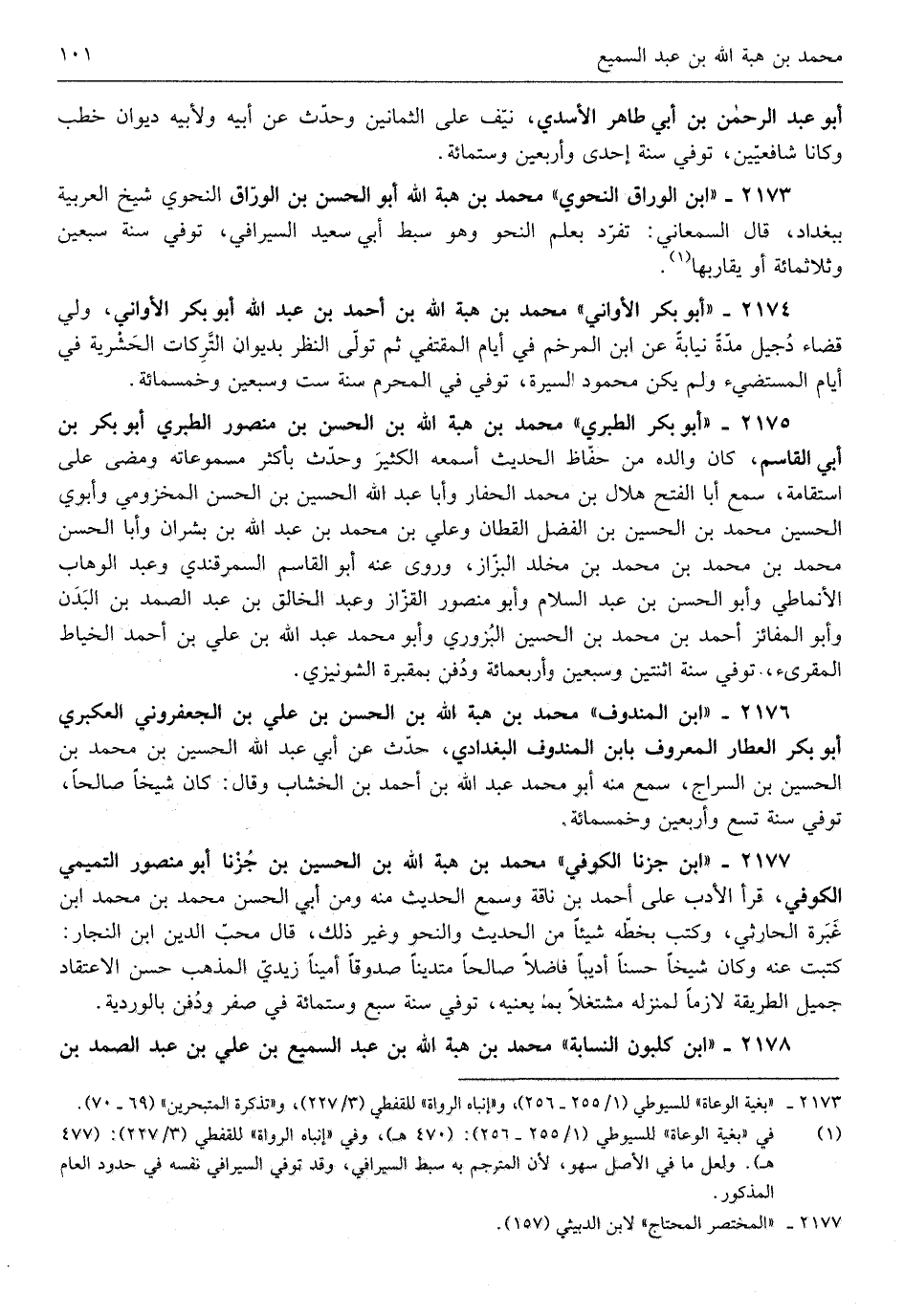 مُحَمَّد بن هبة الله أَبُو الْحسن ابْن الْوراق النَّحْوِيّ شيخ الْعَرَبيَّة ببغداذ قَالَ السَّمْعَانِيّ تفرد بِعلم النَّحْو وَهُوَ سبط أبي سعيد السيرافي توفّي سنة سبعين وَثَلَاث مائَة أَو مَا يقاربها