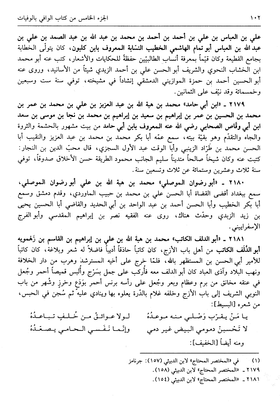 مُحَمَّد بن هبة الله بن عَليّ بن إِبْرَاهِيم بن الْقَاسِم بن زهمويه أَبُو الدلف الْكَاتِب من أهل الأزج كَانَ كَاتبا حاذفاً أديباً فَاضلا لَهُ شعر وبلاغة كَانَ كَاتبا للأمير أبي الْحسن ابْن المستظهر بِاللَّه فَلَمَّا خرج على أَخِيه المسترشد وهرب من دَار الْخلَافَة وَنهب الْبِلَاد وآذى الْعباد كَانَ أَبُو الدلف مَعَه فأركب على جمل بسرج وألبس قَمِيصًا أَحْمَر وَجعل فِي عُنُقه مخانق من برم وَعِظَام وبعر وَجعل على رَأسه برنس أَحْمَر بودع وخرز وَشهر من بَاب النوبي الشريف إِلَى بَاب الأزج وَخَلفه غُلَام بِالدرةِ يعلوه بهَا وينادي عَلَيْهِ ثمَّ سجن فِي الْحَبْس من شعره