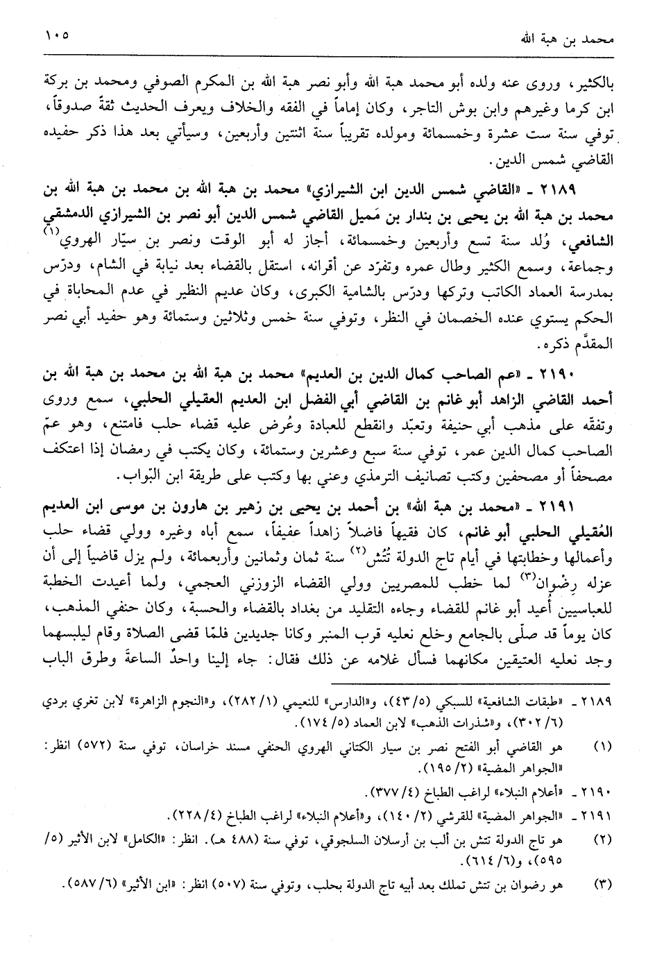 3 - (عَم الصاحب كَمَال الدّين ابْن العديم)