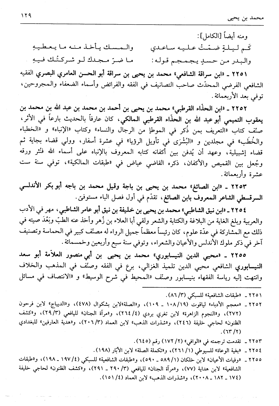 مُحَمَّد بن يحيى بن سراقَة أَبُو الْحسن العامري الْبَصْرِيّ الْفَقِيه الشَّافِعِي الفرضي الْمُحدث صَاحب التصانيف فِي الْفِقْه والفرائض وَأَسْمَاء الضُّعَفَاء والمجروحين توفّي بعد الْأَرْبَع مائَة