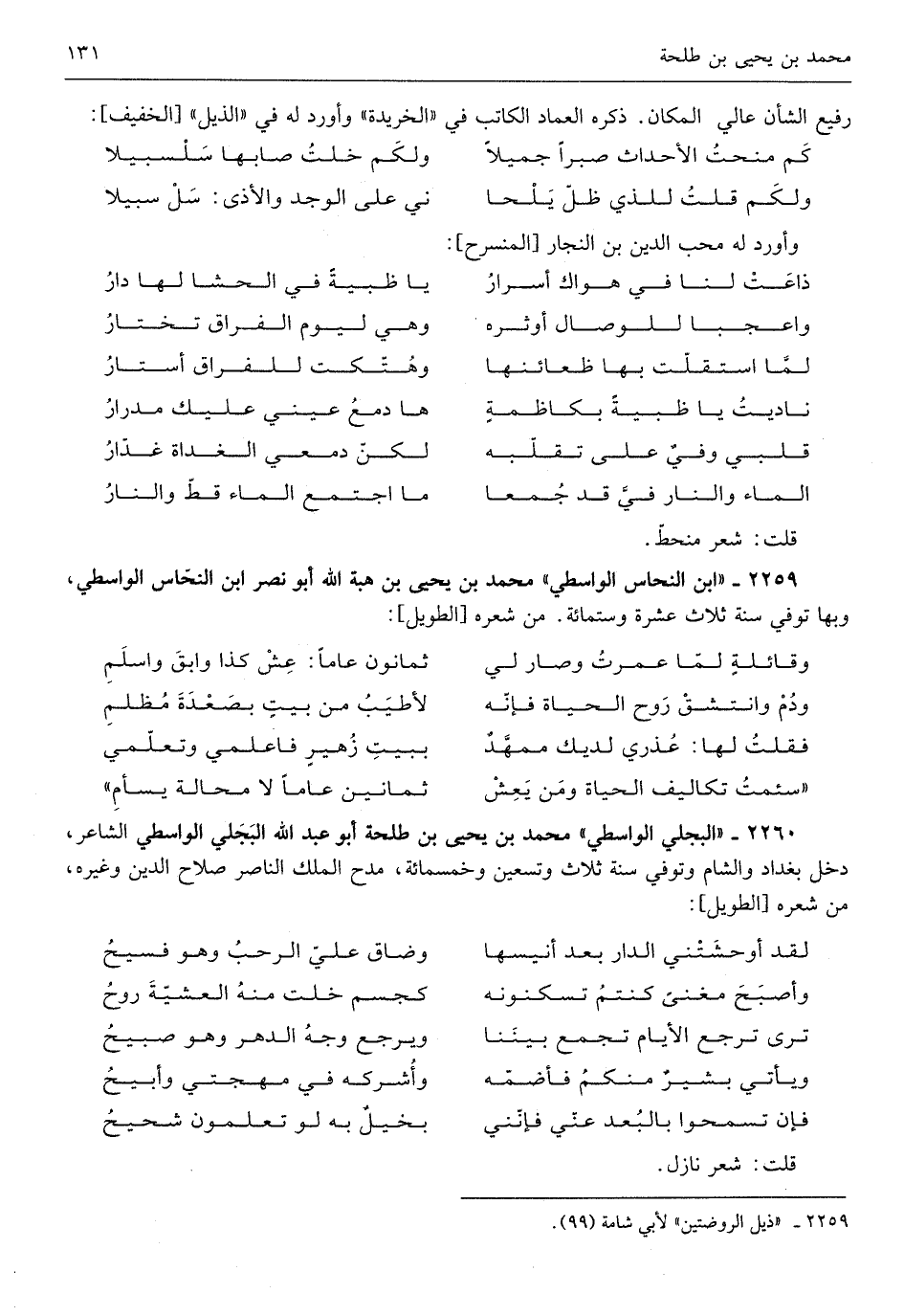 مُحَمَّد بن يحيى بن هبة الله أَبُو نصر ابْن النّحاس الوَاسِطِيّ وَبهَا توفّي سنة ثَلَاث عشر وست مائَة من شعره