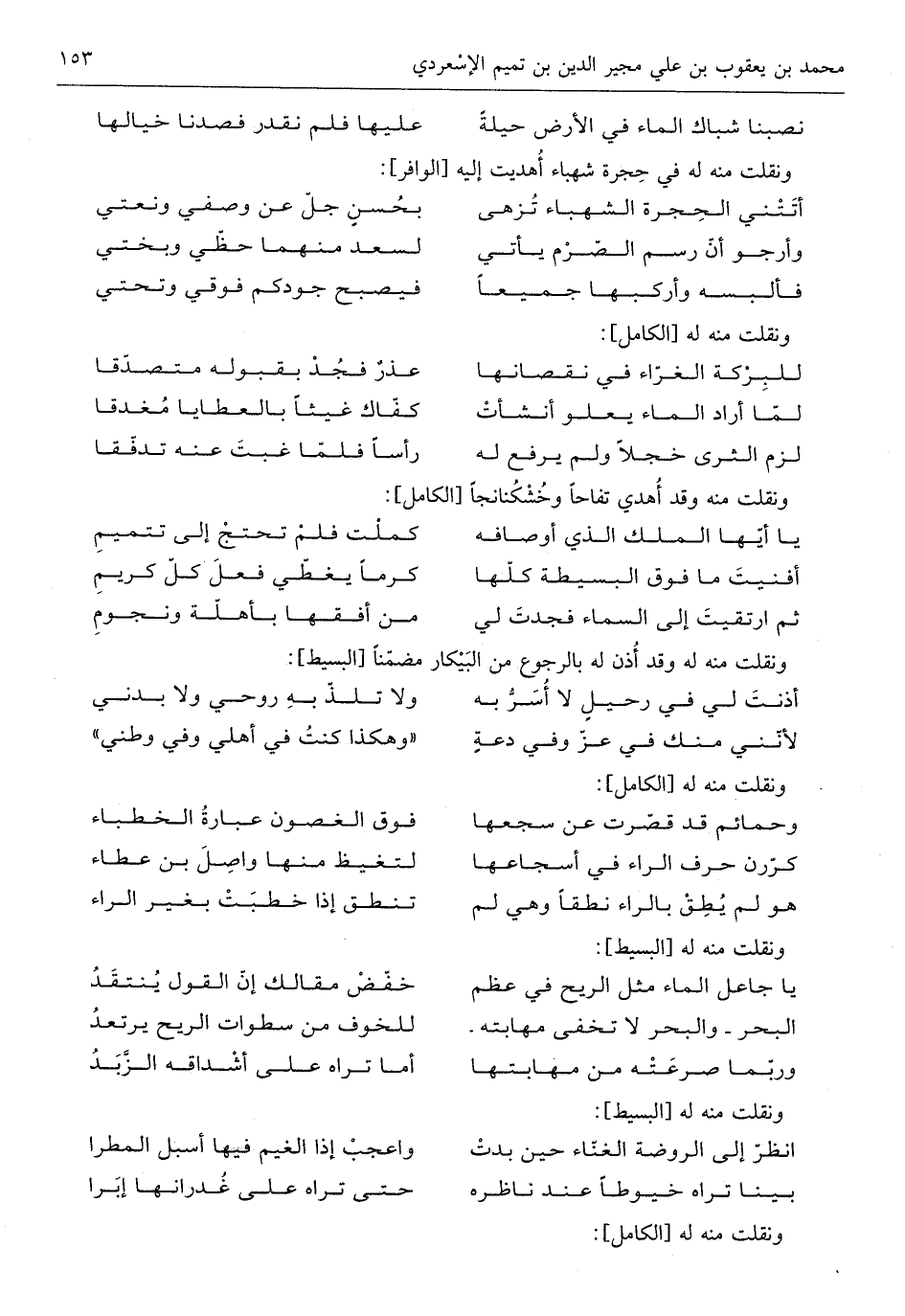 (لما أَرَادَ المَاء يَعْلُو أنشأت ... كَفاك غيثاً بالعطايا مُغْدِقًا)