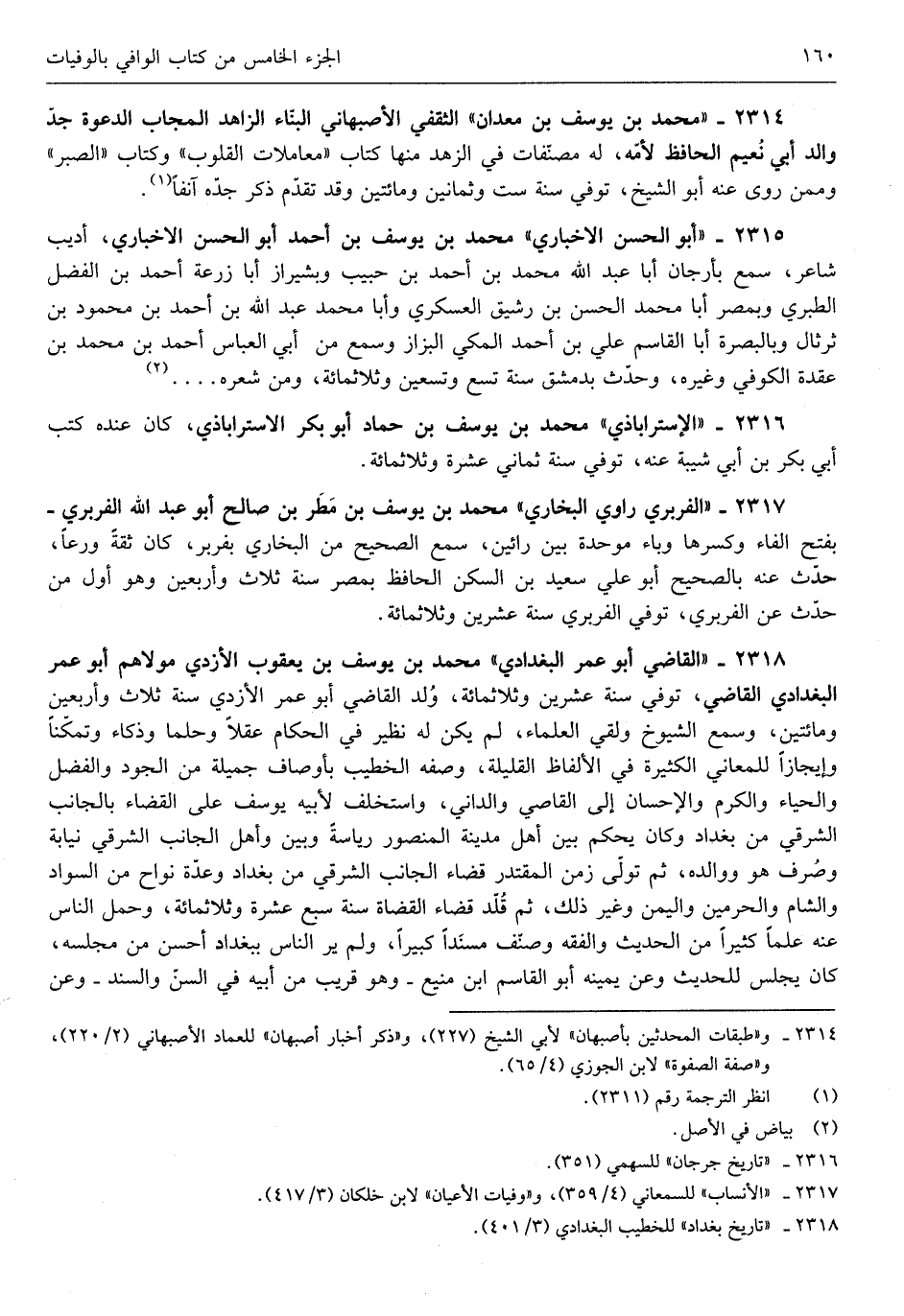 مُحَمَّد بن يُوسُف بن مطر بن صَالح أَبُو عبد الله الْفربرِي بِفَتْح الْفَاء وَكسرهَا وباء مُوَحدَة بَين رائين سمع الصَّحِيح من البُخَارِيّ بفرير كَانَ ثِقَة ورعاً حدث عَنهُ بِالصَّحِيحِ أَبُو عَليّ سعيد)