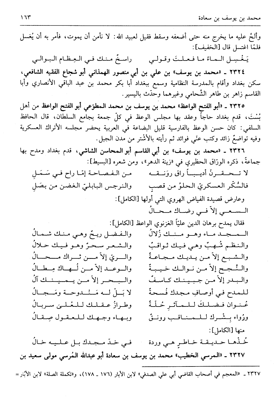 مُحَمَّد بن يُوسُف بن أبي الْقَاسِم أَبُو المحاسن الشَّاشِي قدم بغداذ ومدح بهَا جمَاعَة ذكره الْوراق الحظيري فِي زِينَة الدَّهْر وَمن شعره