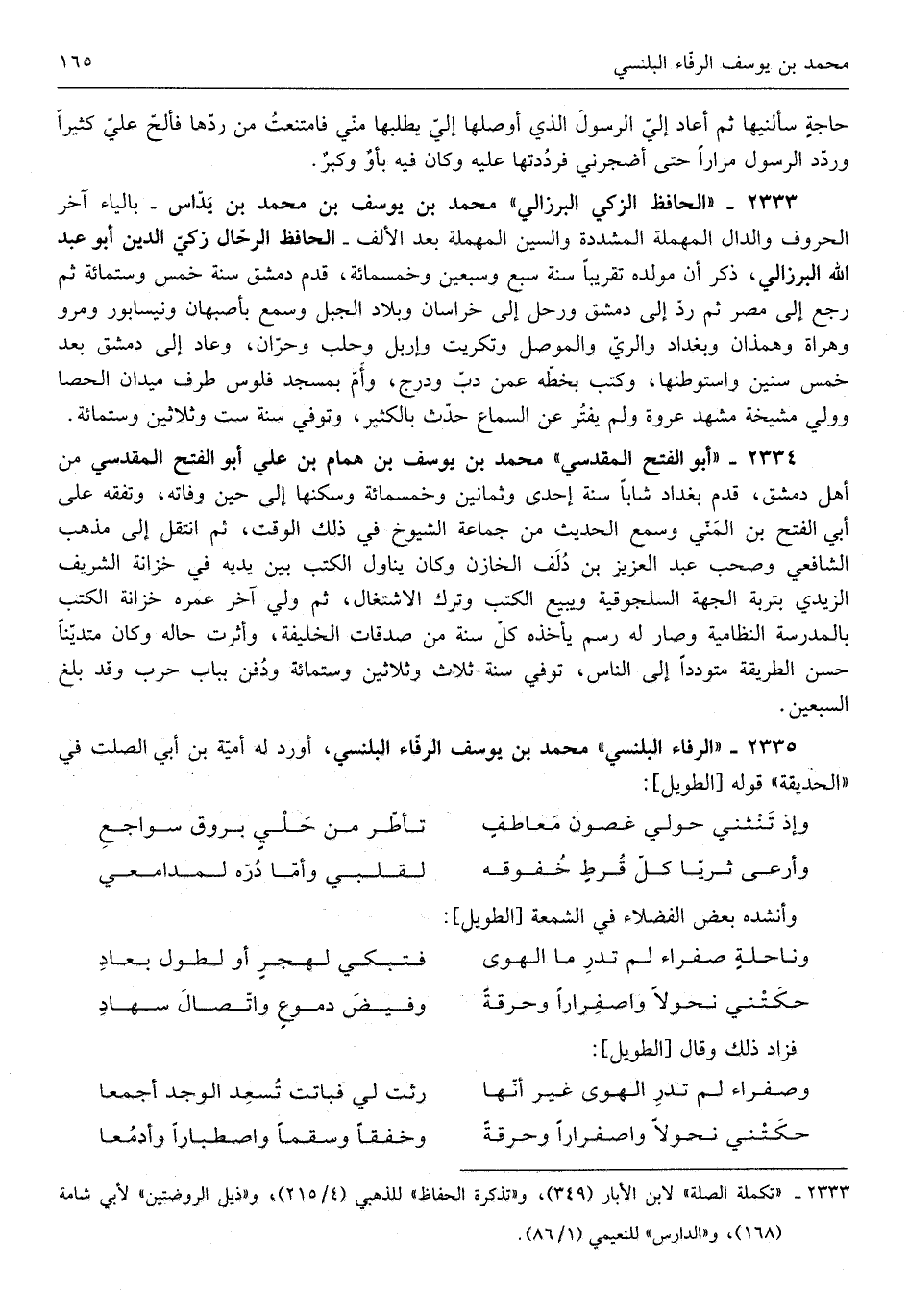 مُحَمَّد بن يُوسُف بن مُحَمَّد بن يداس بِالْيَاءِ آخر الْحُرُوف وَالدَّال الْمُهْملَة الْمُشَدّدَة وَالسِّين الْمُهْملَة بعد الْألف الْحَافِظ الرّحال زكي الدّين أَبُو عبد الله البرزالي ذكر أَن مولده تَقْرِيبًا سنة)