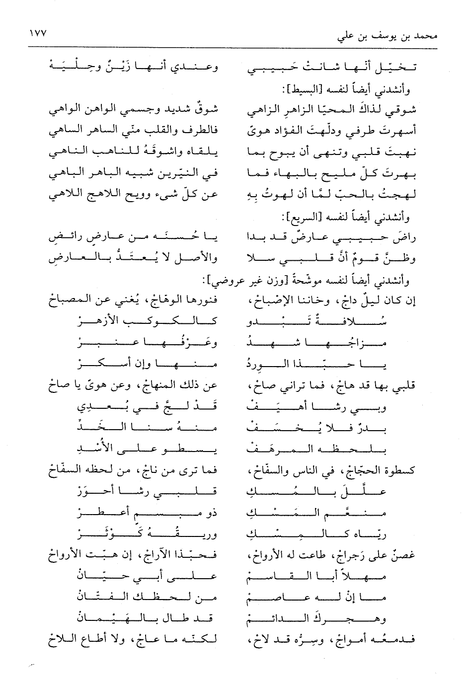 (شوقي لذاك الْمحيا الزَّاهِر الزاهي ... شوق شَدِيد وجسمي الواهن الواهي)