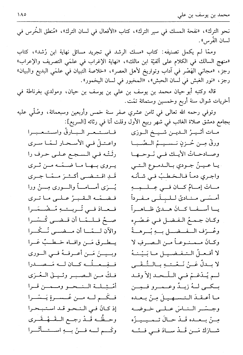 قَالَه وَكتبه أَبُو حَيَّان مُحَمَّد بن يُوسُف بن عَليّ بن يُوسُف بن حَيَّان ومولدي بغرناطة فِي أخريات شَوَّال سنة أَربع وَخمسين وست مائَة تمت