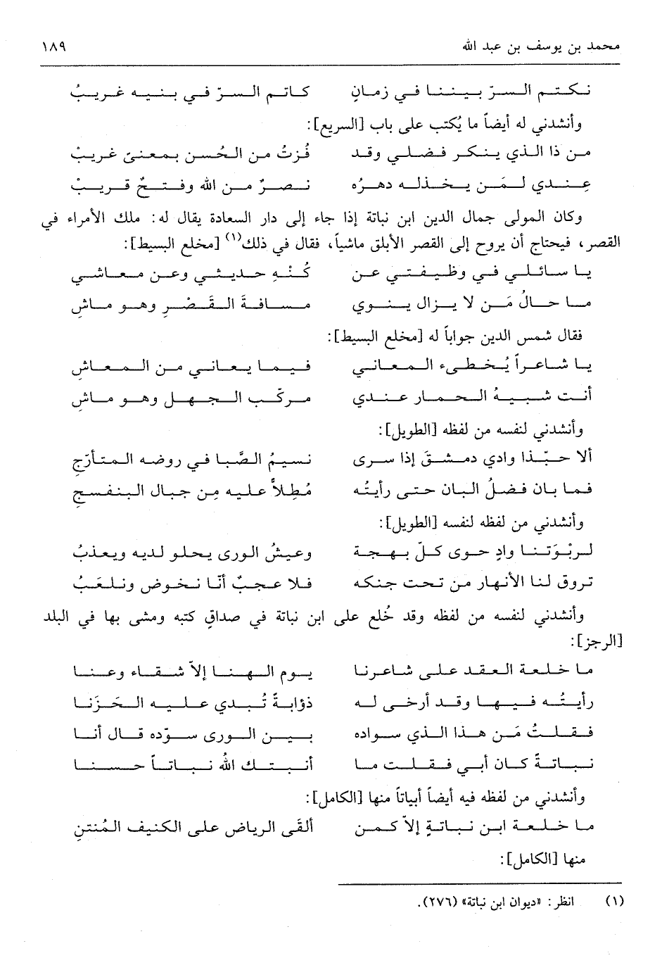 وأنشدني لنَفسِهِ وَقد خلع على ابْن نباتة فِي صدَاق كتبه وَمَشى بهَا فِي الْبَلَد