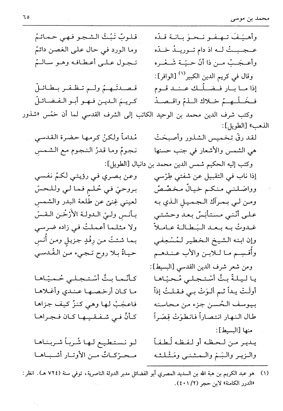 (فخلهم خلاك الذَّم وأقصد ... كريم الدّين فَهُوَ أَبُو الْفَضَائِل)