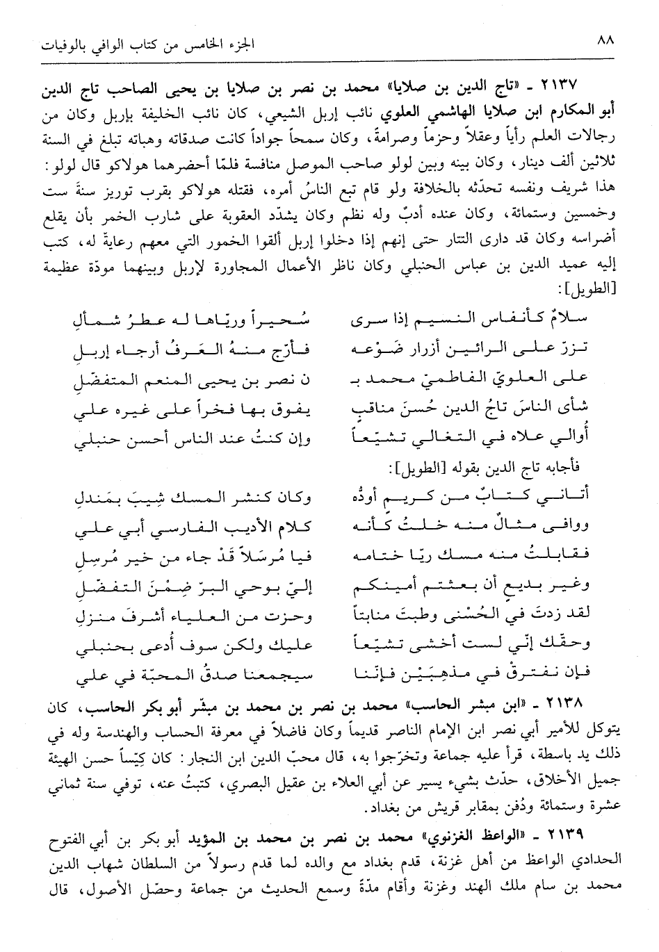 مُحَمَّد بن نصر بن مُحَمَّد بن مُبشر أَبُو بكر الحاسب كَانَ يتوكل للأمير أبي نصر ابْن الإِمَام قَدِيما وَكَانَ فَاضلا فِي معرفَة الْحساب والهندسة وَله فِي ذَلِك يَد باسطة قَرَأَ عَلَيْهِ جمَاعَة وتخرجوا بِهِ قَالَ محب الدّين ابْن النجار كَانَ كيساً حسن الْهَيْئَة جميل الْأَخْلَاق حدث بِشَيْء يسير عَن أبي الْعَلَاء بن عقيل الْبَصْرِيّ كتبت عَنهُ توفّي سنة ثَمَانِي عشرَة وست مائَة وَدفن بمقابر قُرَيْش من بغداذ