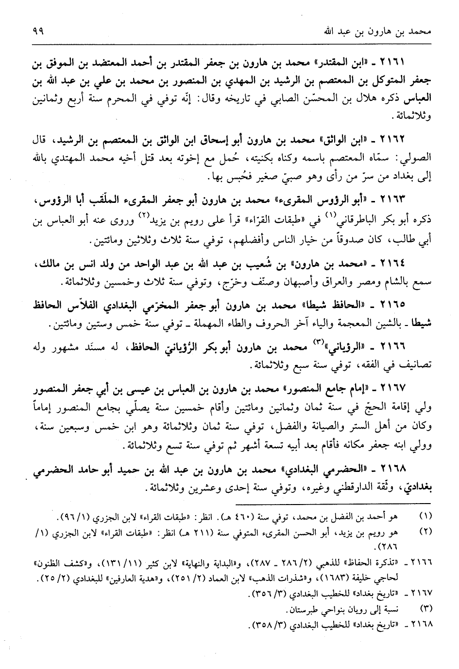 مُحَمَّد بن هَارُون بن جَعْفَر المقتدر بن أَحْمد المعتضد بن الْمُوفق بن جَعْفَر المتَوَكل بن المعتصم بن الرشيد بن الْمهْدي بن الْمَنْصُور بن مُحَمَّد بن عَليّ بن عبد الله بن الْعَبَّاس ذكره)