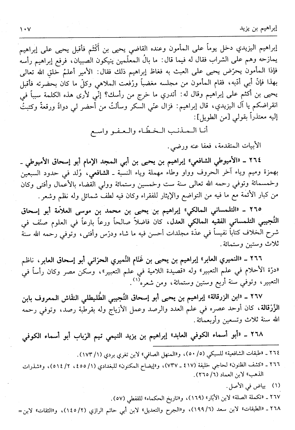 أدبه فَقَامَ الْمَأْمُون من مَجْلِسه مغضباً وَرفعت الملاهي وكل مَا كَانَ بِحَضْرَتِهِ فَأقبل يحيى بن أَكْثَم على إِبْرَاهِيم وَقَالَ لَهُ أَتَدْرِي مَا خرج من رَأسك إِنِّي لأرى هَذِه الْكَلِمَة سَببا فِي انقراضكم يَا آل اليزيدي قَالَ إِبْرَاهِيم فَزَالَ عني السكر وَسَأَلت من أحضر لي دَوَاة ورقعة وكتبت إِلَيْهِ معتذراً بِقَوْلِي أَنا المذنب الخطاء وَالْعَفو وَاسع الأبيات الْمُتَقَدّمَة فَعَفَا عَنهُ وَرَضي