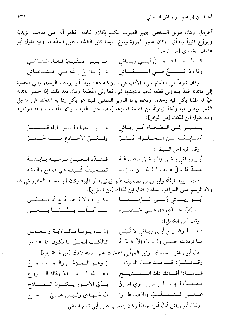 عَليّ التقلب وَالِاضْطِرَاب جهدي وَلَيْسَ عَليّ النجاح وَكَانَ أَبُو رياش أول أمره جندياً وَكَانَ يتعصب على أبي تَمام الطَّائِي