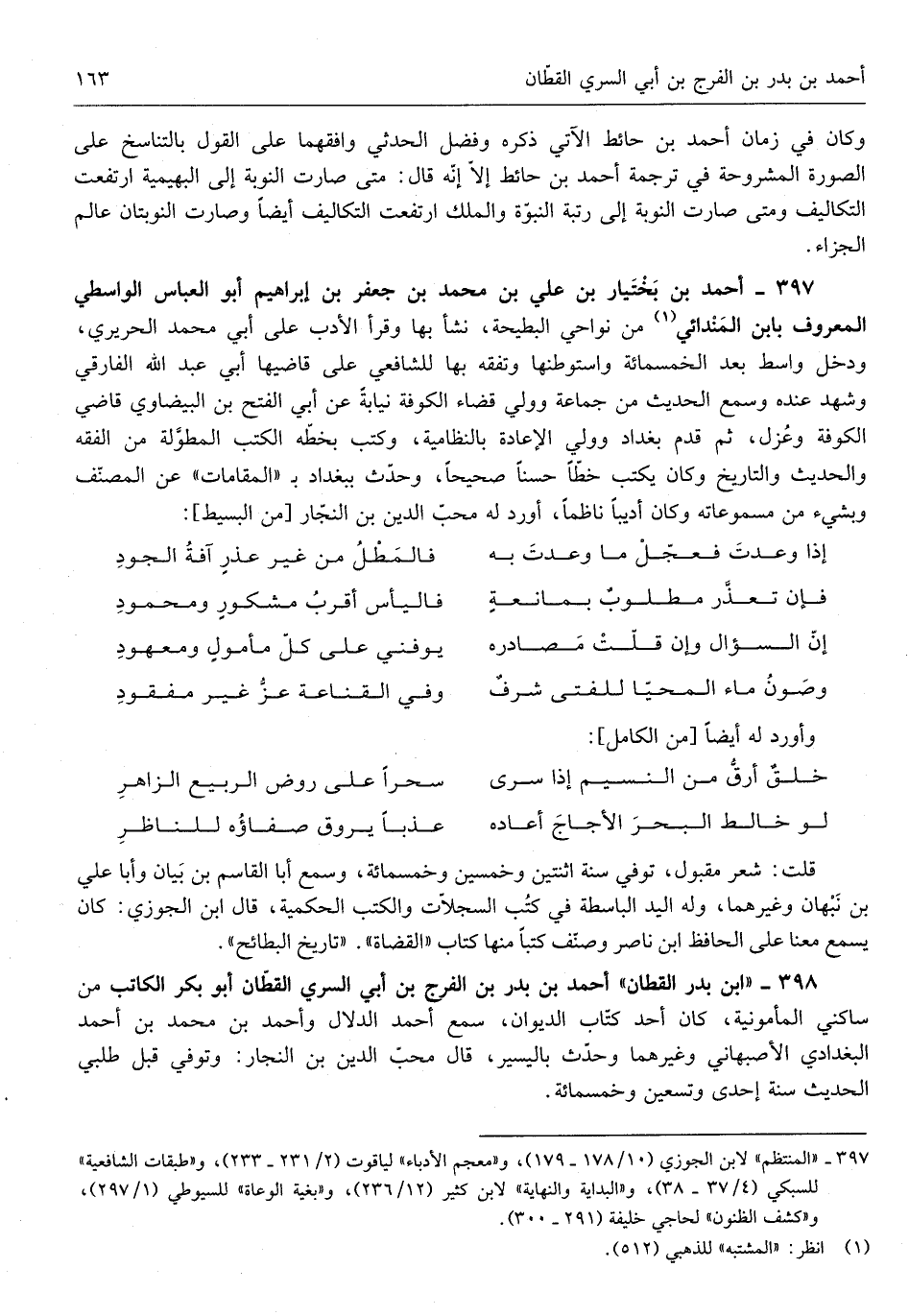 قلت شعر مَقْبُول توفّي سنة اثْنَتَيْنِ وَخمسين وَخمْس مائَة وَسمع أَبَا الْقَاسِم ابْن بَيَان وَأَبا عَليّ ابْن نَبهَان وَغَيرهمَا وَله الْيَد الباسطة فِي كتب السجلات والكتب الْحكمِيَّة قَالَ ابْن الْجَوْزِيّ كَانَ يسمع مَعنا على الْحَافِظ ابْن نَاصِر وصنف كتبا مِنْهَا كتاب الْقُضَاة تَارِيخ البطائح