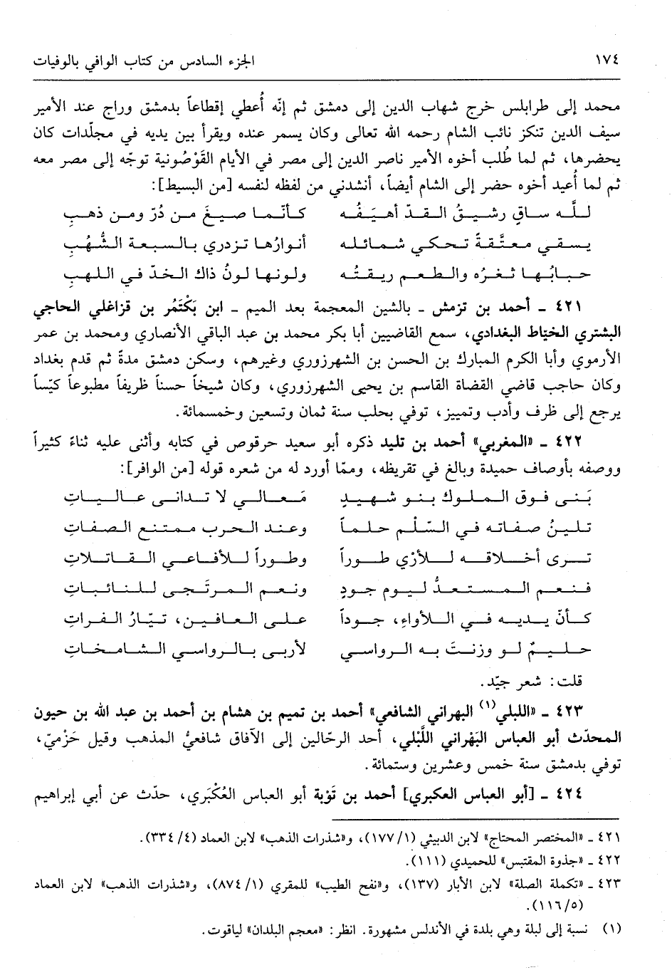 كتاب الوافي بالوفيات (اسم الجزء: 6)