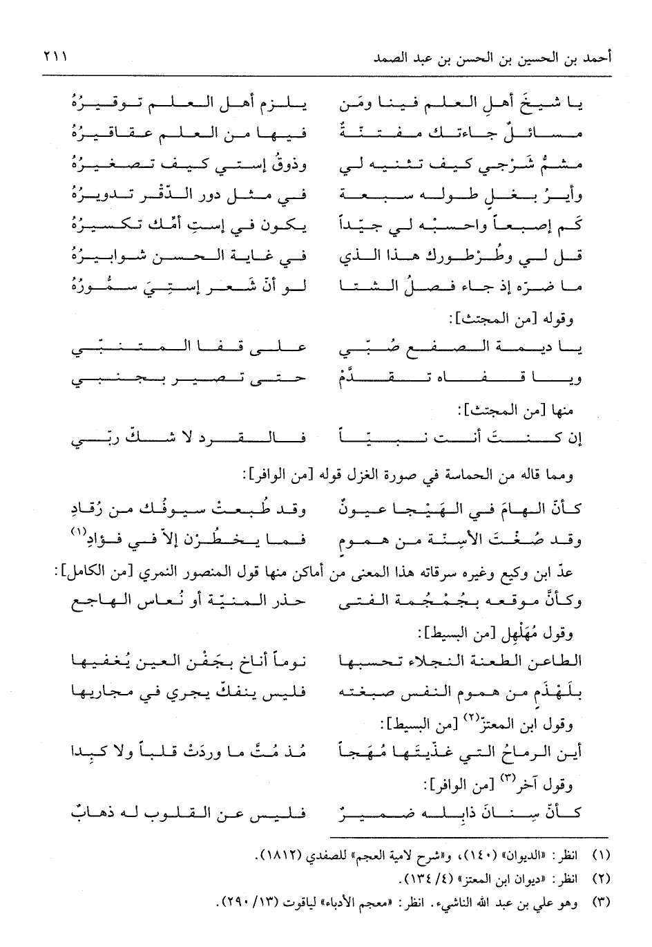 (كَأَن سِنَان ذابله ضمير ... فَلَيْسَ عَن الْقُلُوب لَهُ ذهَاب)