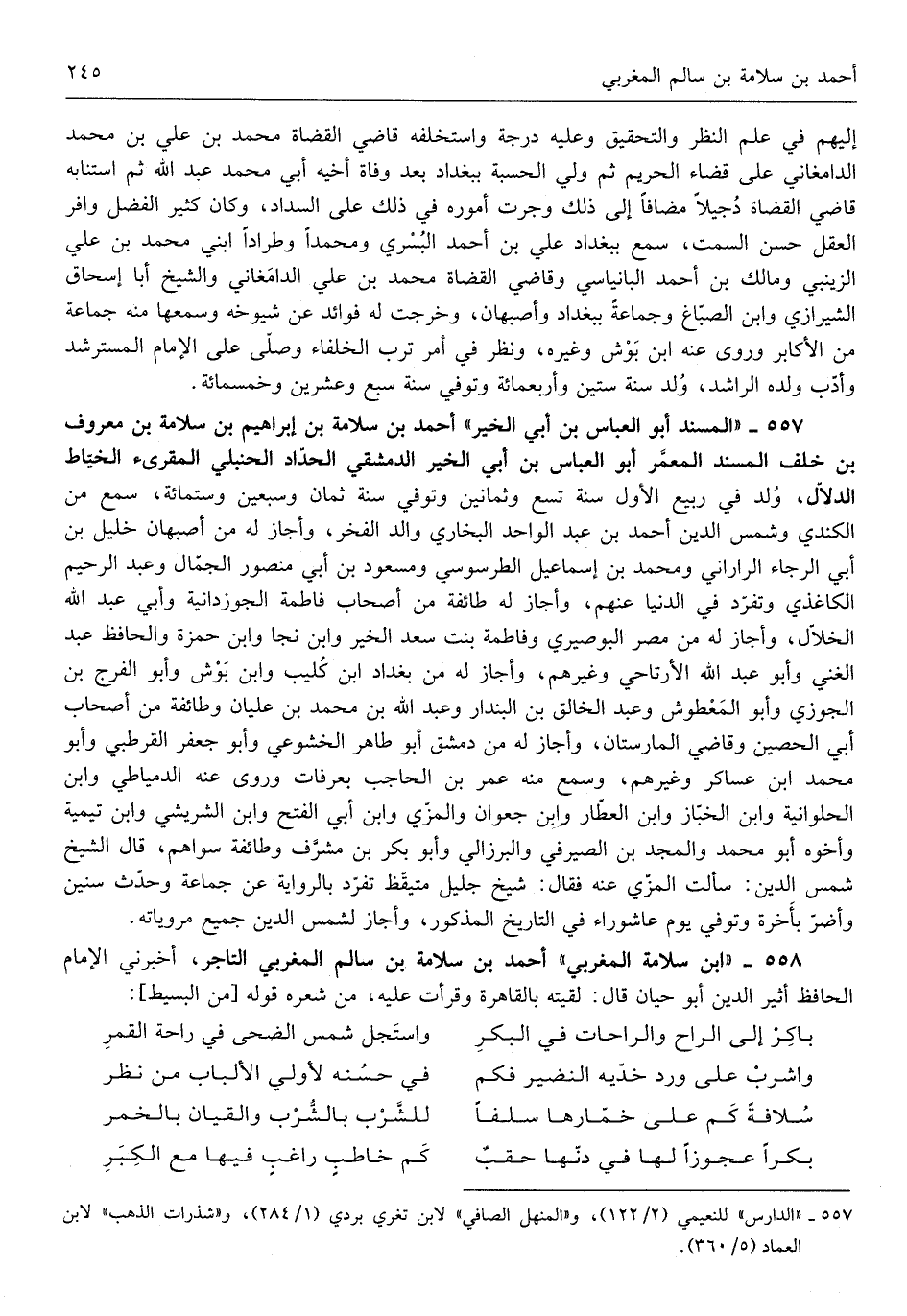 أَحْمد بن سَلامَة بن سَالم المغربي التَّاجِر أَخْبرنِي الإِمَام الْحَافِظ أثير الدّين أَبُو حَيَّان قَالَ لَقيته بِالْقَاهِرَةِ وقرأت عَلَيْهِ من شَرعه قَوْله