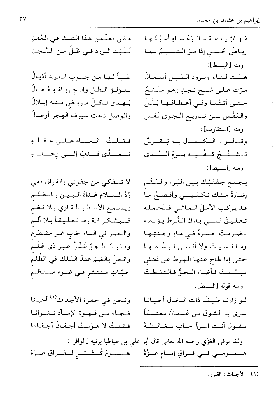 (لَو زارنا طيف ذَات الْخَال أَحْيَانًا ... وَنحن فِي حُفْرَة الأجداث أَحْيَانًا)