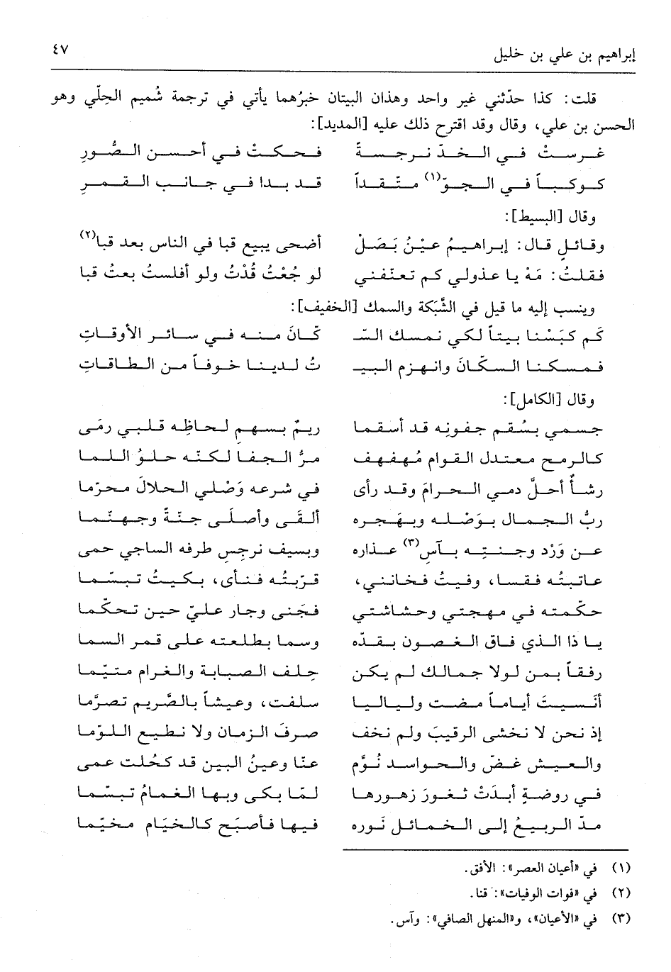 قلت كَذَا حَدثنِي غير وَاحِد وَهَذَانِ البيتان خبرهما يَأْتِي فِي تَرْجَمَة شميم الْحلِيّ وَهُوَ الْحسن بن عَليّ وَقَالَ وَقد اقترح ذَلِك عَلَيْهِ