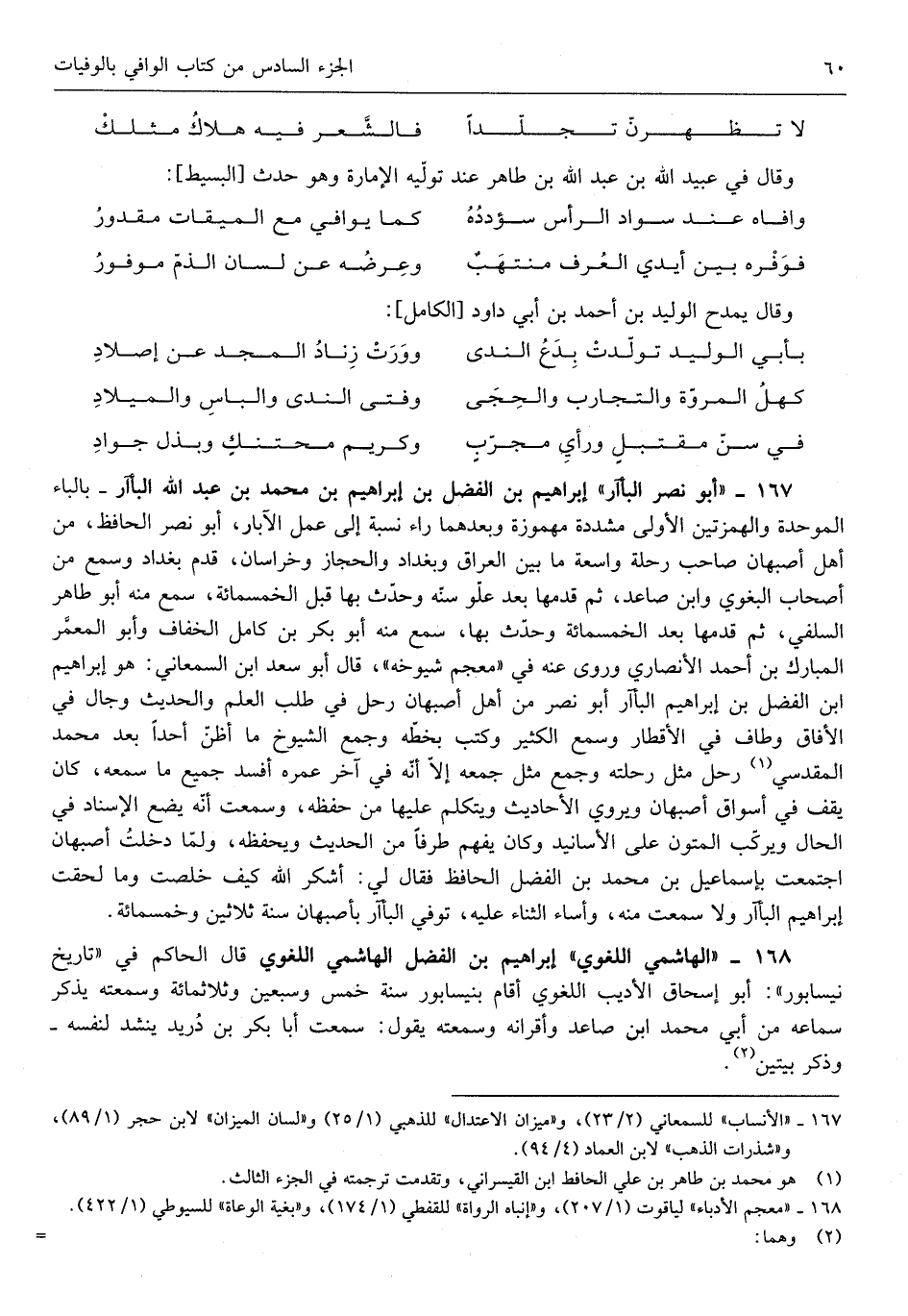 إِبْرَاهِيم بن الْفضل الْهَاشِمِي اللّغَوِيّ قَالَ الْحَاكِم فِي تَارِيخ نيسابور أَبُو إِسْحَاق الأديب اللّغَوِيّ أَقَامَ بنيسابور سنة خمس وَسبعين وَثَلَاث مائَة وسمعته يذكر سَمَاعه من أبي مُحَمَّد ابْن صاعد وأقرانه وسمعته يَقُول سَمِعت أَبَا بكر ابْن دُرَيْد ينشد لنَفسِهِ وَذكر بَيْتَيْنِ