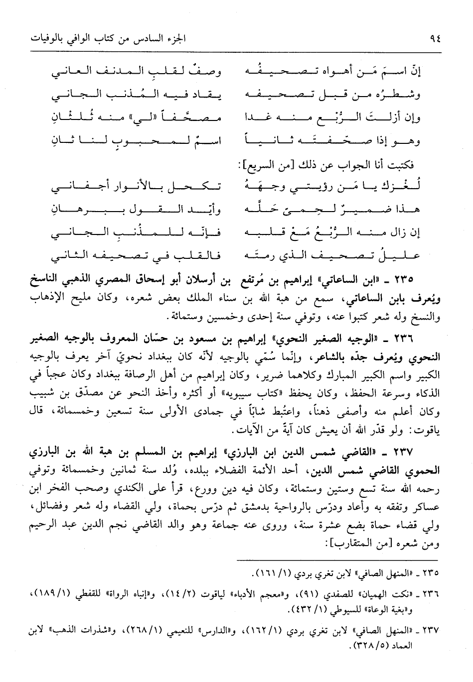 إِبْرَاهِيم بن مُرْتَفع بن أرسلان أَبُو إِسْحَاق الْمصْرِيّ الذَّهَبِيّ النَّاسِخ وَيعرف بِابْن الساعاتي سمع من هبة الله بن سناء الْملك بعض شعره وَكَانَ مليح الإذهاب والنسخ وَله شعر كتبُوا عَنهُ وَتُوفِّي سنة إِحْدَى وَخمسين وست مائَة