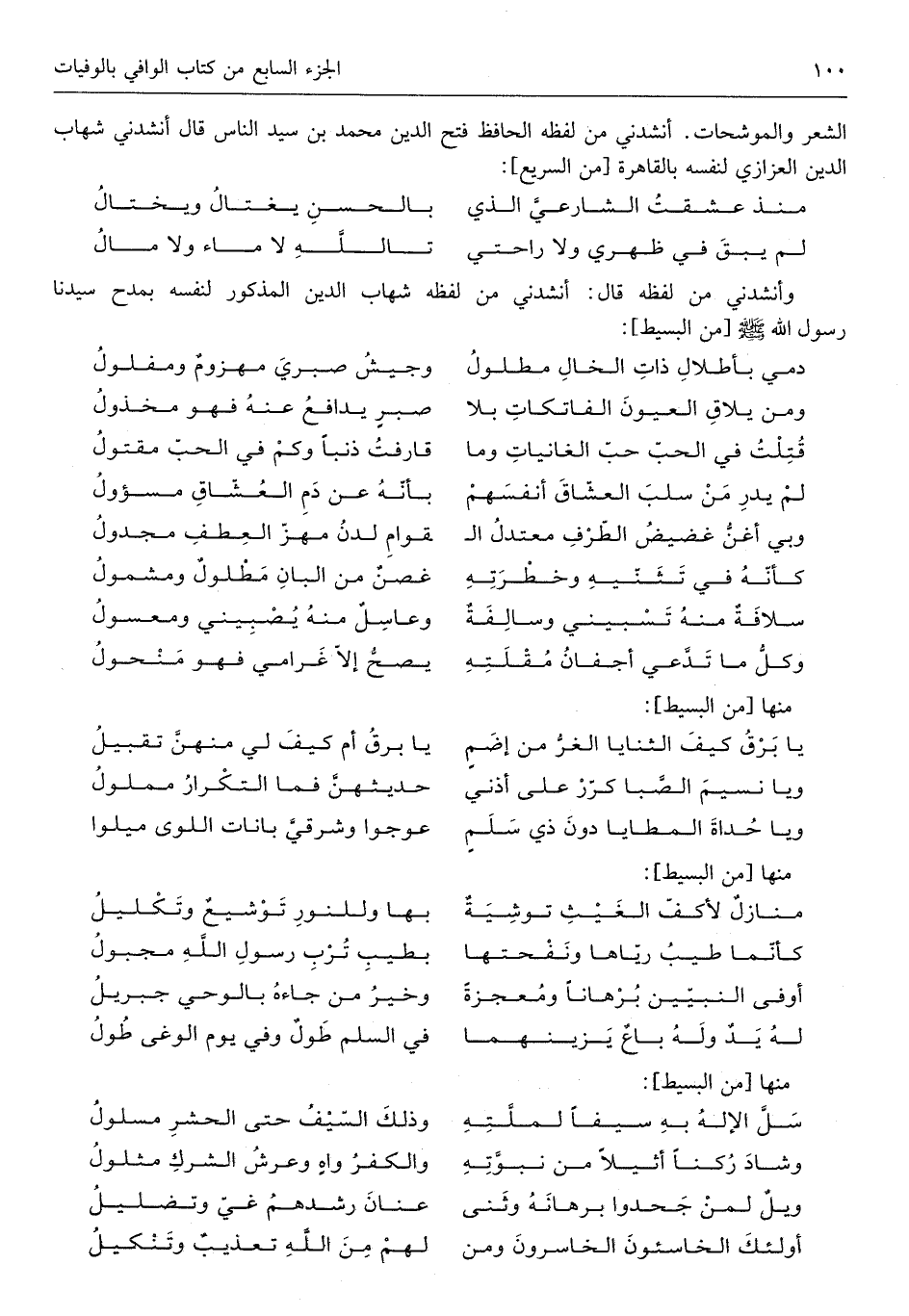 أَنْشدني من لَفظه الْحَافِظ فتح الدّين مُحَمَّد بن سيد النَّاس قَالَ أَنْشدني شهَاب الدّين العزازي)