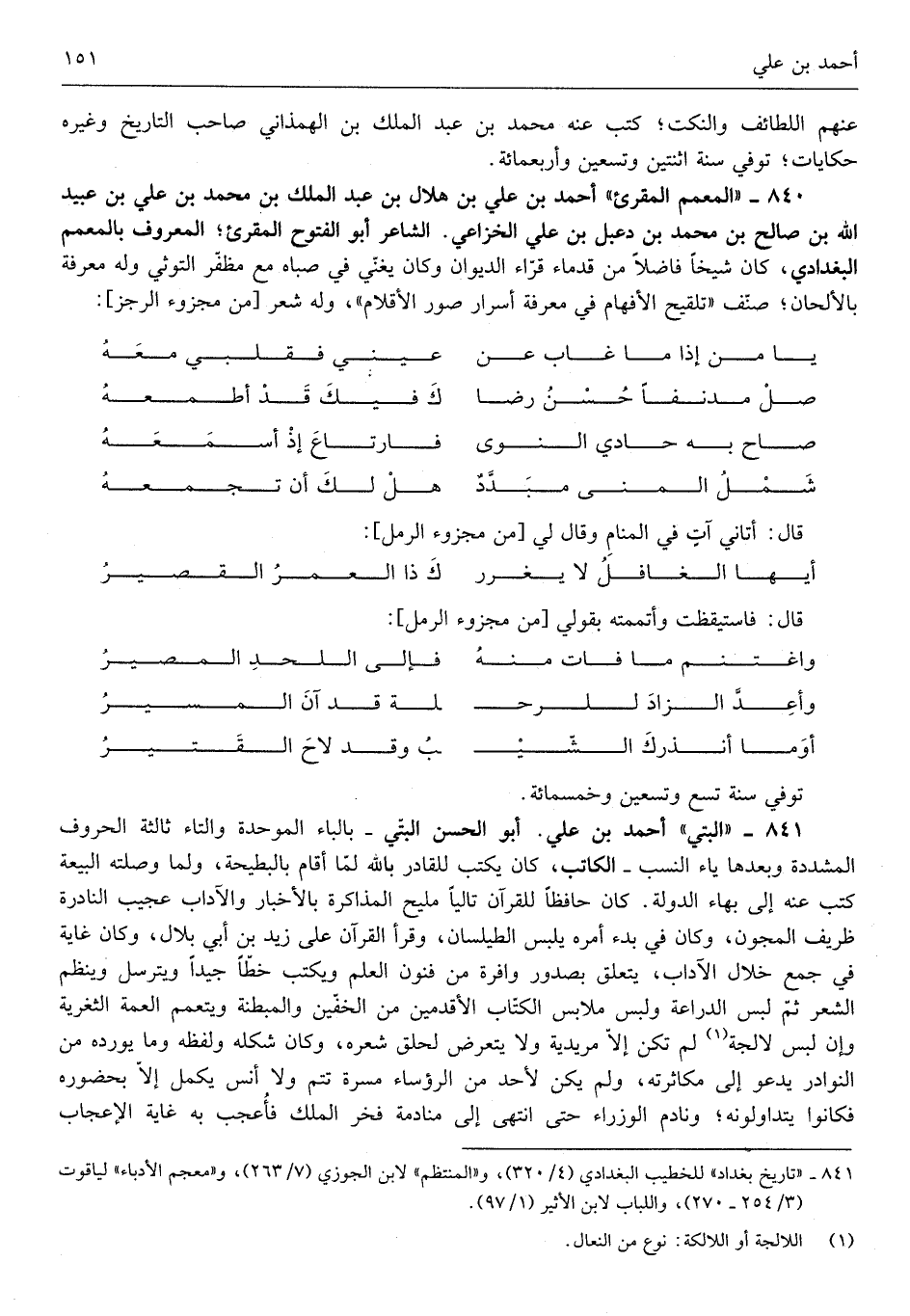 أَحْمد بن عَليّ أَبُو الْحسن البتي بِالْبَاء الْمُوَحدَة وَالتَّاء ثَالِثَة الْحُرُوف الْمُشَدّدَة وَبعدهَا يَاء النّسَب الْكَاتِب كَانَ يكْتب للقادر بِاللَّه لما أَقَامَ بالبطحية وَلما وصلته الْبيعَة كتب عَنهُ إِلَى بهاء الدولة