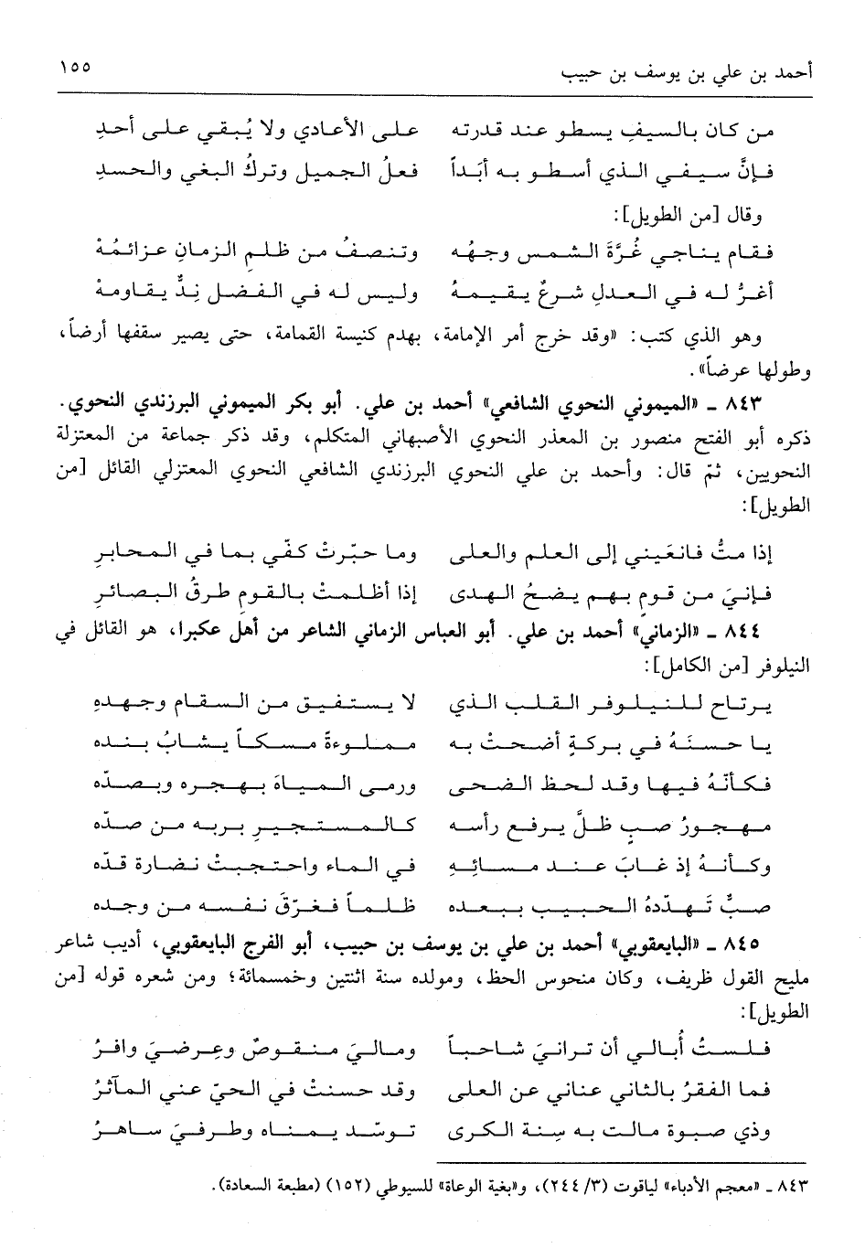 أَحْمد بن عَليّ بن يُوسُف بن حبيب أَبُو الْفرج البايعقوبي أديب شَاعِر مليح القَوْل ظريف وَكَانَ منحوس الْحَظ ومولده سنة اثْنَتَيْنِ وَخمْس مائَة وَمن شعره قَوْله