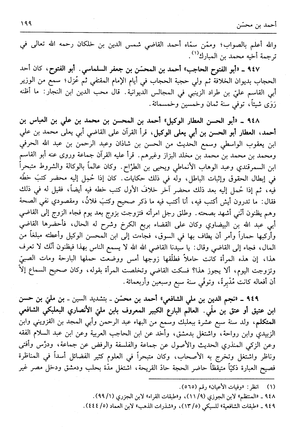 أَحْمد بن المحسن بن جَعْفَر السلماسي أَبُو الْفتُوح كَانَ أحد الْحجاب بديوان الْخلَافَة ثمَّ ولي حجبة الْحجاب فِي أَيَّام الإِمَام المقتفي ثمَّ عزل سمع من الْوَزير أبي الْقَاسِم عَليّ بن طراد الزَّيْنَبِي فِي الْمجَالِس الديوانية قَالَ محب الدّين ابْن النجار مَا أَظُنهُ روى شَيْئا توفّي سنة ثَمَان وَخمسين وَخمْس مائَة