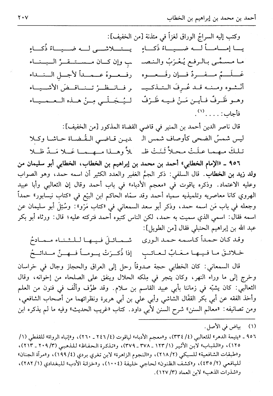 أَحْمد بن مُحَمَّد بن إِبْرَاهِيم بن الْخطاب الْخطابِيّ أَبُو سُلَيْمَان من ولد زيد بن الْخطاب قَالَ السلَفِي ذكر الجمّ الْغَفِير وَالْعدَد الْكثير أَن اسْمه حمد وَهُوَ الصَّوَاب وَعَلِيهِ الِاعْتِمَاد وَذكره)
