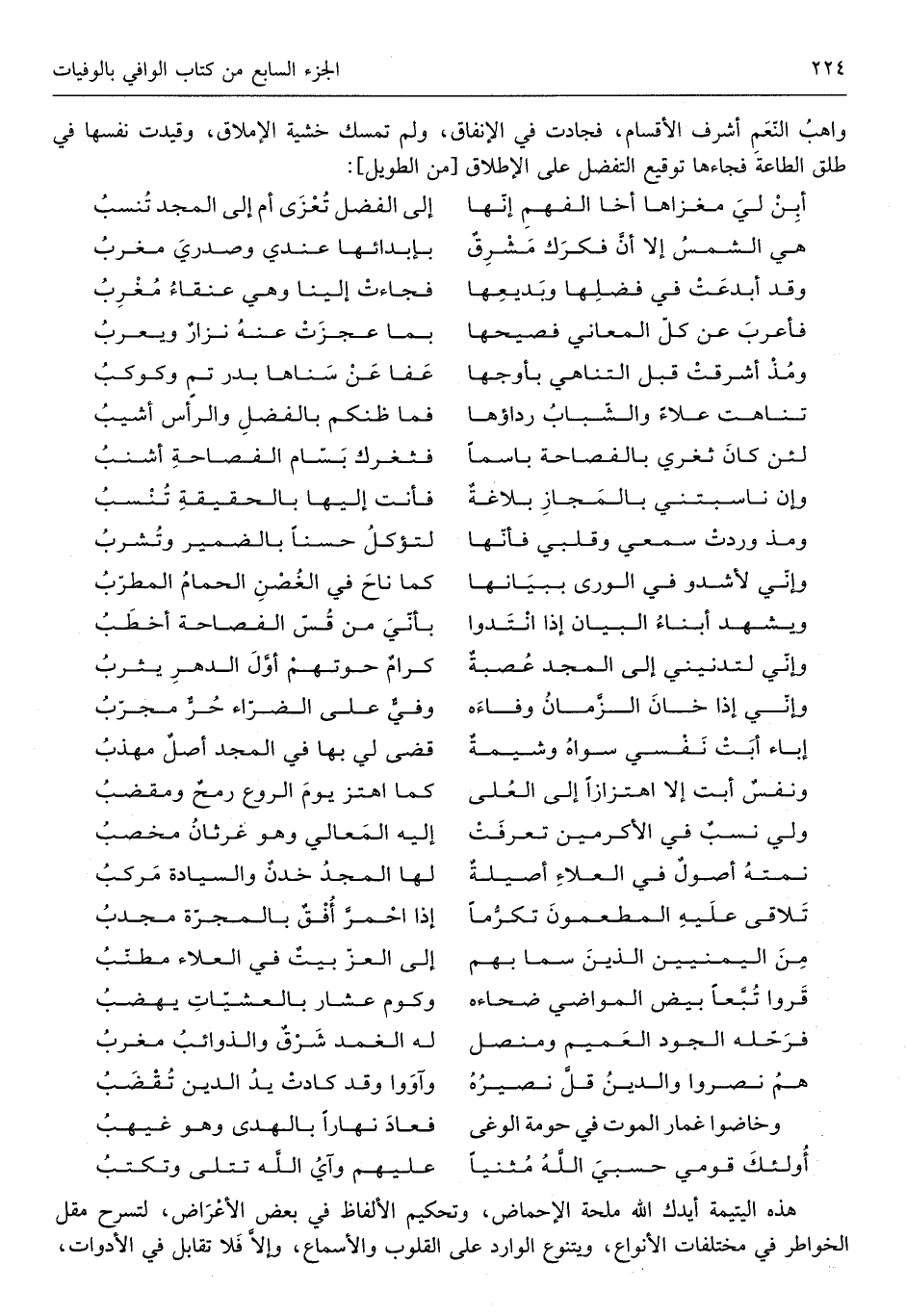 (ولي نسبٌ فِي الأكرمين تعرفت ... إِلَيْهِ الْمَعَالِي خدنٌ والسيادة مركب)