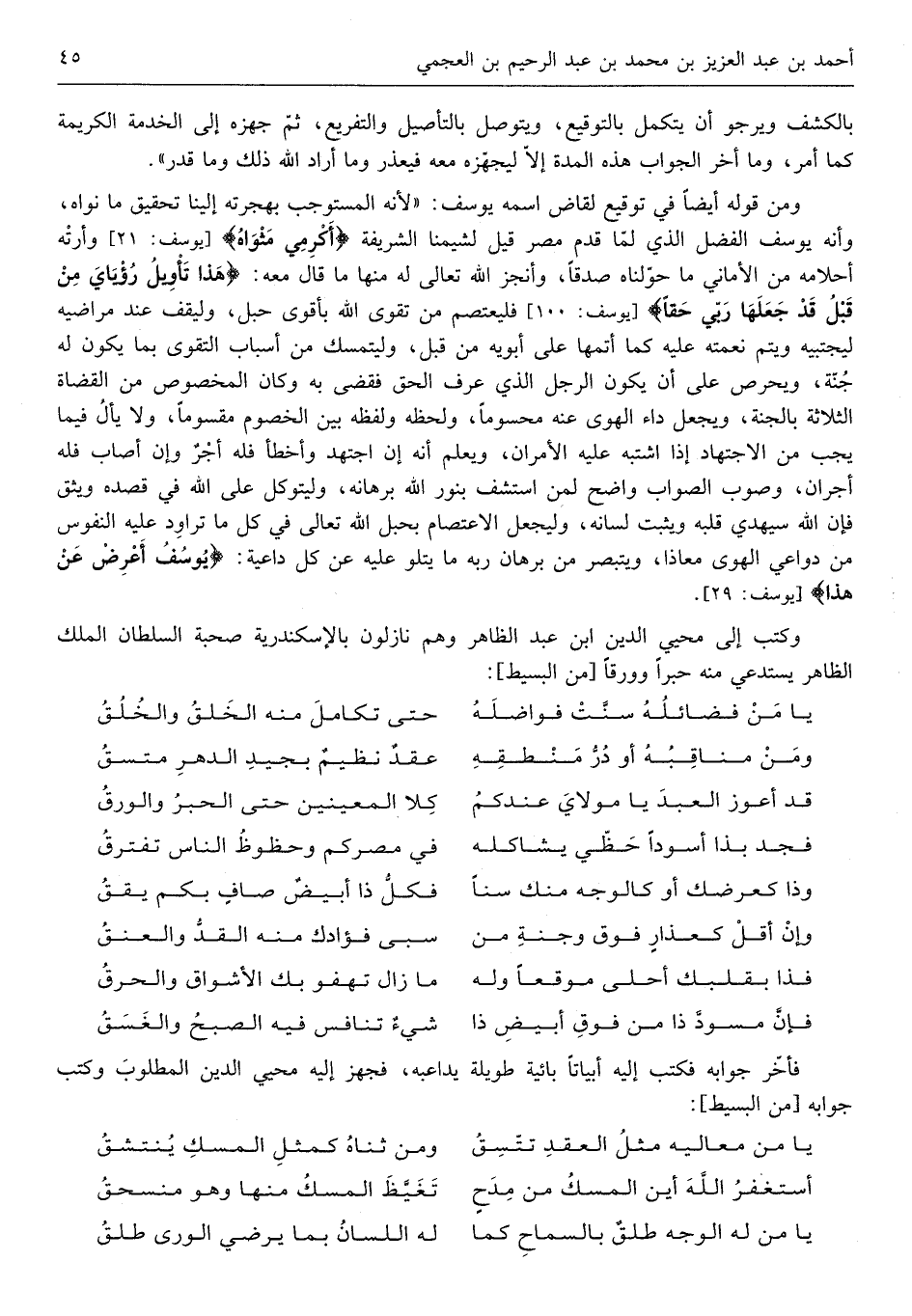 وَكتب إِلَى محيي الدّين ابْن عبد الظَّاهِر وهم نازلون بالإسكندرية صُحْبَة السُّلْطَان الْملك الظَّاهِر يَسْتَدْعِي مِنْهُ حبرًا وورقاً