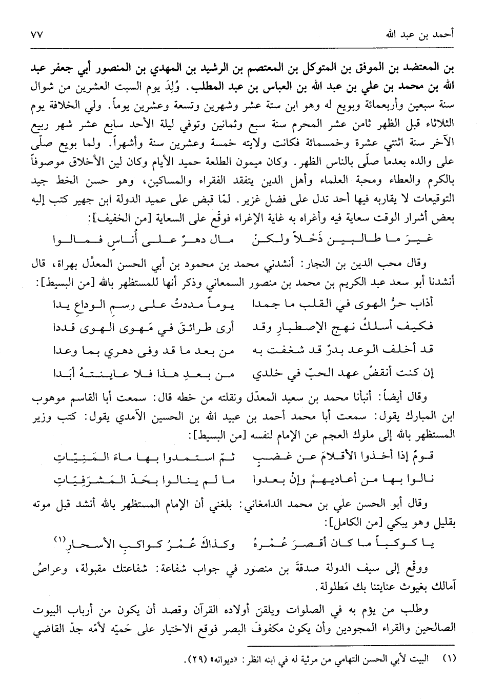 وَقَالَ محب الدّين ابْن النجار أَنْشدني مُحَمَّد بن مَحْمُود بن أبي الْحسن الْمعدل بهراة قَالَ أنشدنا أَبُو سعد عبد الْكَرِيم بن مُحَمَّد بن مَنْصُور السَّمْعَانِيّ وَذكر أَنَّهَا للمستظهر بِاللَّه