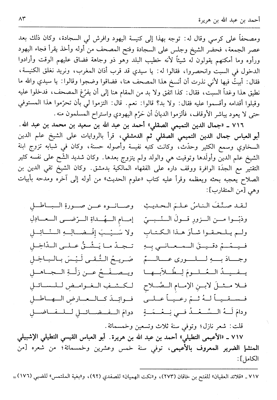 أَحْمد بن عبد الله بن هُرَيْرَة أَبُو الْعَبَّاس الْقَيْسِي التطيلي الإشبيلي المنشأ الضَّرِير الْمَعْرُوف بالأعيمى توفّي سنة خمس وَعشْرين وَخمْس مائَة من شعره