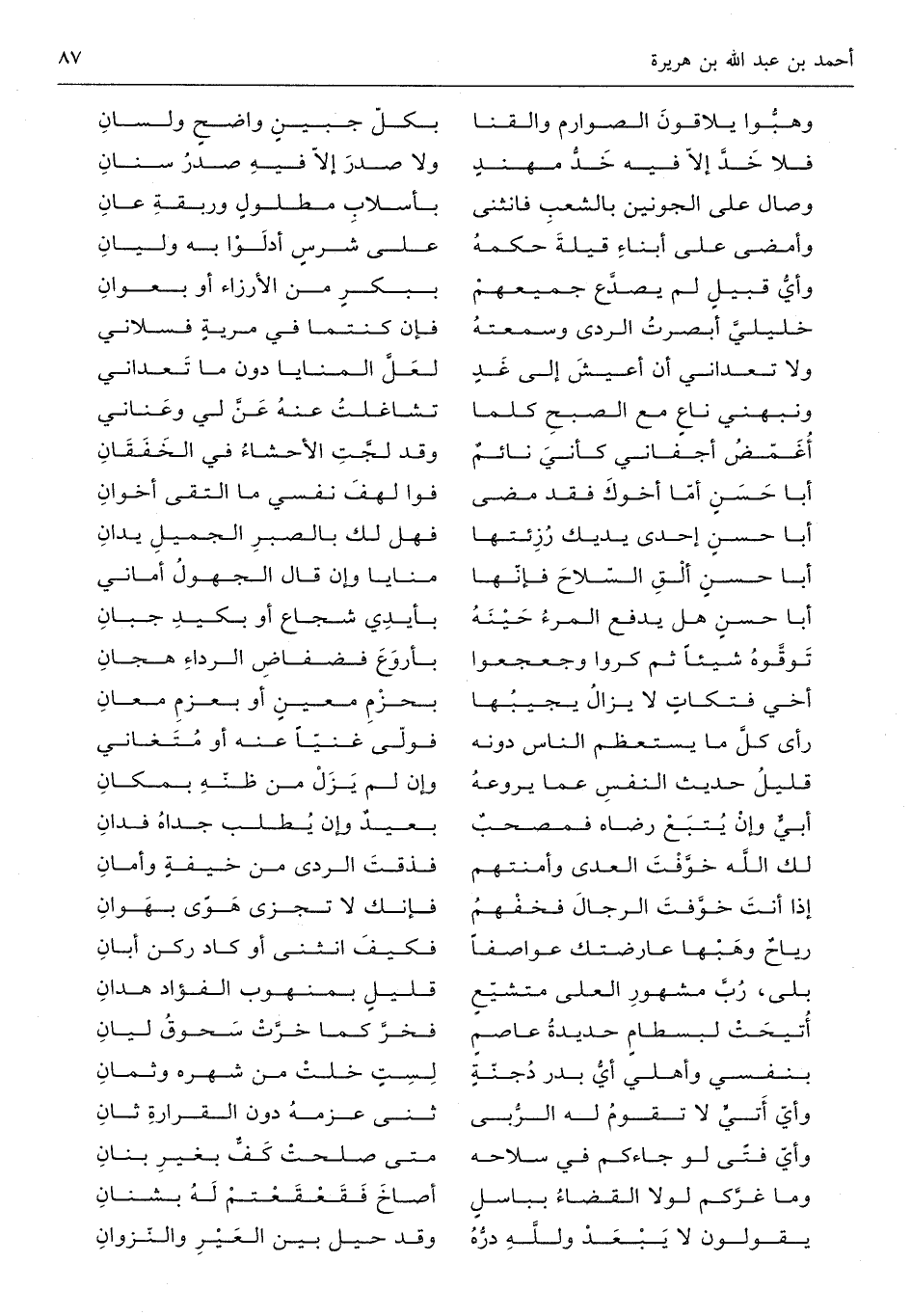 (أَبَا حسنٍ إِحْدَى يَديك رزئتها ... فَهَل لَك بِالصبرِ الْجَمِيل يدان)
