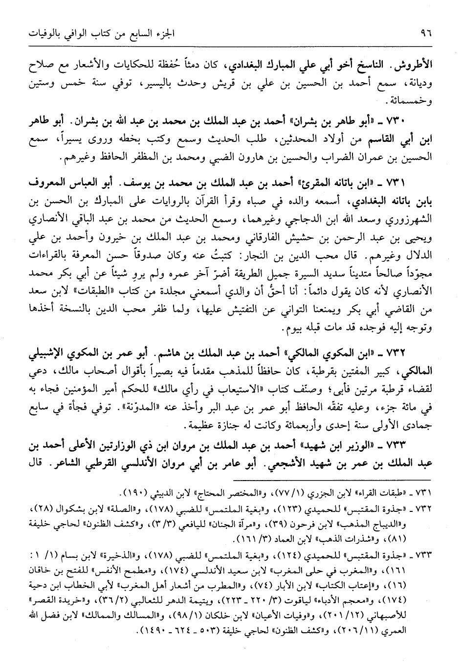 أَحْمد بن عبد الْملك بن هَاشم أَبُو عمر ابْن المكوي الإشبيلي الْمَالِكِي كَبِير الْمُفْتِينَ بقرطبة كَانَ حَافِظًا للْمَذْهَب مقدما فِيهِ بَصيرًا بأقوال أَصْحَاب مَالك دعِي لقَضَاء قرطبة مرَّتَيْنِ فَأبى وصنف كتاب الِاسْتِيعَاب فِي رَأْي مَالك للْحكم أَمِير الْمُؤمنِينَ فجَاء بِهِ فِي مائَة جُزْء وَعَلِيهِ تفقه الْحَافِظ أَبُو عمر ابْن عبد الْبر وَأخذ عَنهُ الْمُدَوَّنَة توفّي فَجْأَة فِي سَابِع جُمَادَى الأولى سنة إِحْدَى وَأَرْبع وَمِائَة وَكَانَت لَهُ جَنَازَة عَظِيمَة)
