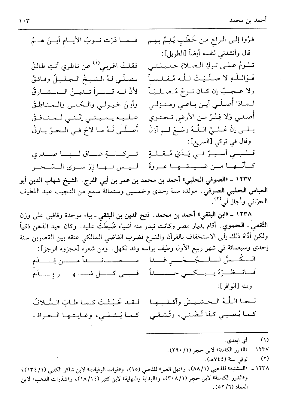 أَحْمد بن مُحَمَّد فتح الدّين ابْن البققيبباء مُوَحدَة وقافين على وزن الثقفيالحموي أَقَامَ بديار مصر وَكَانَت تبدو مِنْهُ أَشْيَاء ضبطت عَلَيْهِ وَكَانَ جيد الذِّهْن ذكياً وَلَكِن أدَّاه ذَلِك إِلَى الاستخفاف بِالْقُرْآنِ وَالشَّرْع فَضرب القَاضِي الْمَالِكِي عُنُقه بَين القصرين سنة إِحْدَى وَسَبْعمائة فِي شهر ربيع الأول وطيف بِرَأْسِهِ وَقد تكهل وَمن شعره