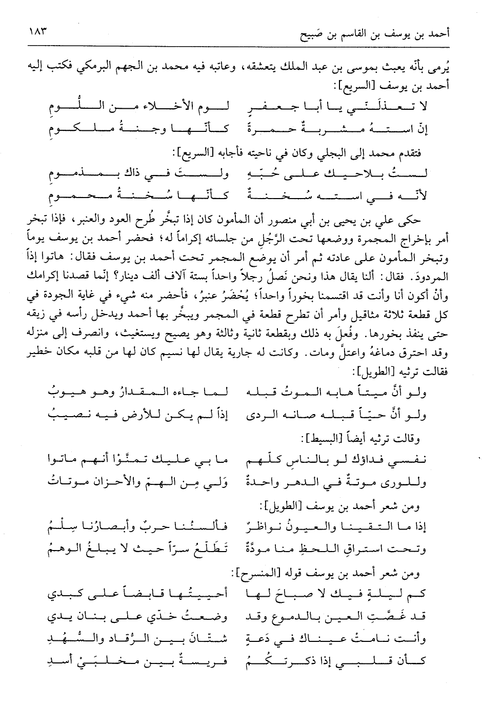 وَمن شعر أَحْمد بن يُوسُف قَوْله