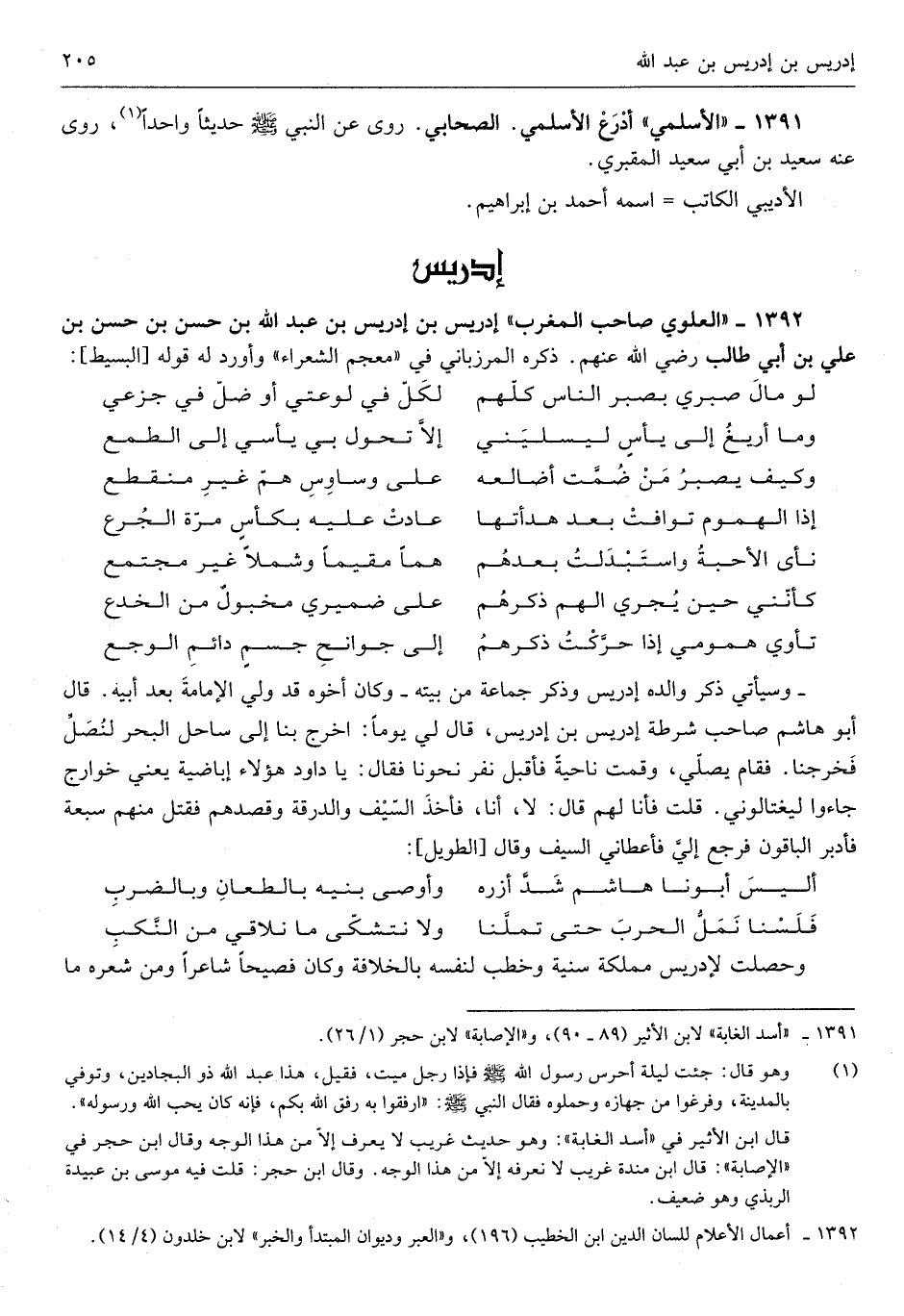 إِدْرِيس بن إِدْرِيس بن عبد الله بن حسن بن حسن بن عَليّ بن أبي طَالب رَضِي الله عَنْهُم ذكره المرزباني فِي مُعْجم الشُّعَرَاء وَأورد لَهُ قَوْله