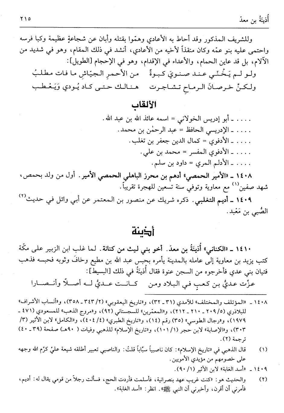 (عزّت عديّ بن كعبٍ فِي الْبِلَاد وَمن ... كَانَت عديّ لَهُ أصلا وأنصارا)