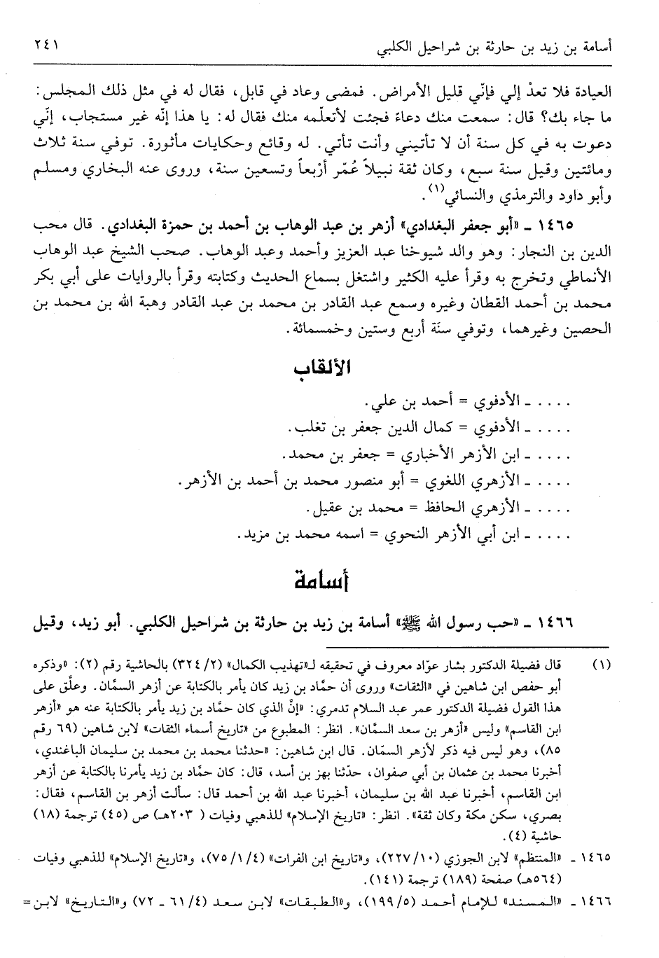 أُسَامَة بن زيد بن حَارِثَة بن شرَاحِيل الْكَلْبِيّ أَبُو زيد وَقيل