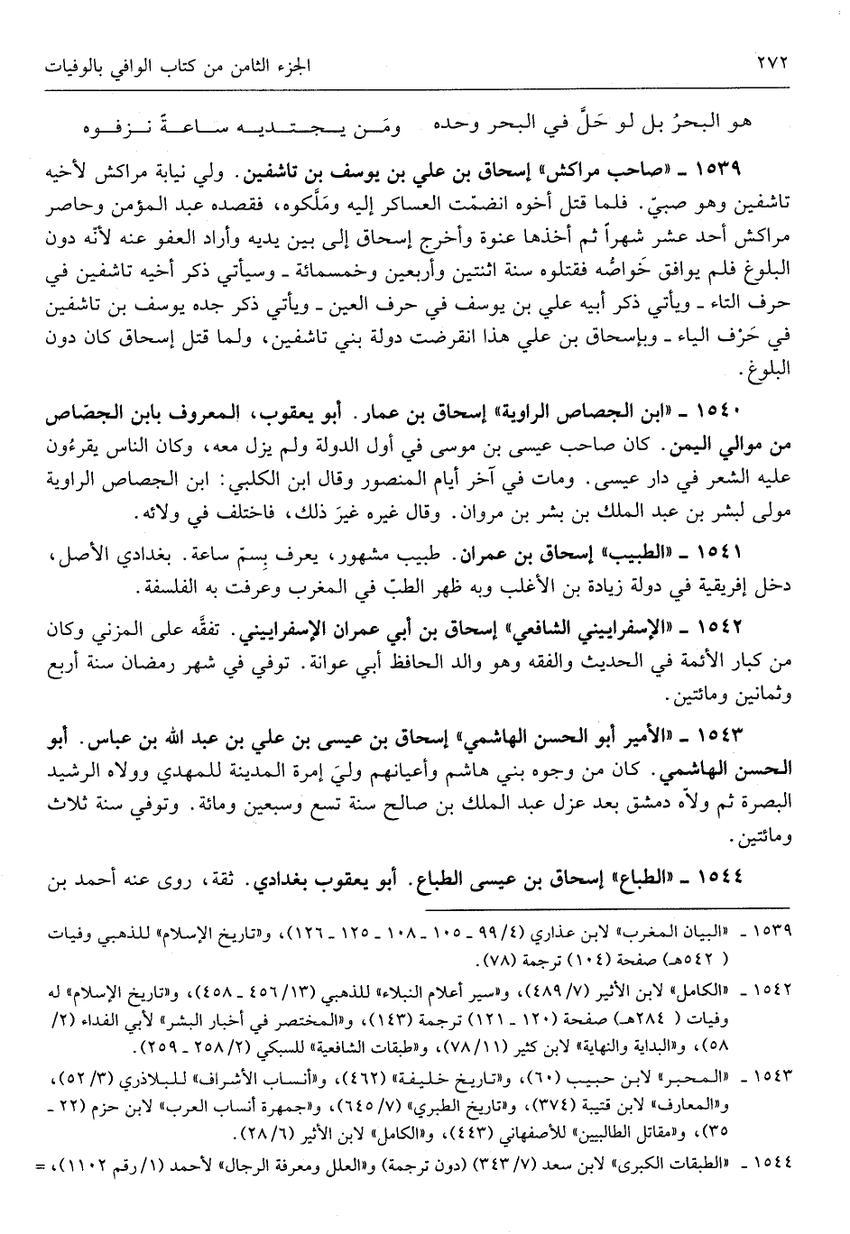 إِسْحَاق بن عَليّ بن يُوسُف بن تاشفين ولي نِيَابَة مراكش لِأَخِيهِ تاشفين وَهُوَ صبيّ فَلَمَّا قتل أَخُوهُ انضمت العساكر إِلَيْهِ وملكوه فقصد عبد الْمُؤمن وحاصر مراكش أحد عشر شهرا ثمَّ أَخذهَا عنْوَة وَأخرج إِسْحَاق إِلَى بَين يَدَيْهِ وَأَرَادَ الْعَفو عَنهُ لِأَنَّهُ دون الْبلُوغ فَلم يُوَافق خواصّه فَقَتَلُوهُ سنة اثْنَتَيْنِ وَأَرْبَعين وَخَمْسمِائة وَسَيَأْتِي ذكر أَخِيه تاشفين فِي حرف التَّاء وَيَأْتِي ذكر أَبِيه عَليّ ابْن يُوسُف فِي حرف الْعين وَيَأْتِي ذكر جده يُوسُف بن تاشفين فِي حرف الْيَاء