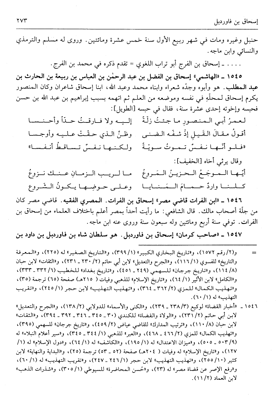 إِسْحَاق بن الْفضل بن عبد الرَّحْمَن بن الْعَبَّاس بن ربيعَة بن الْحَارِث بن عبد الْمطلب هُوَ وَأَبوهُ وجدّه شعراء وابناه مُحَمَّد وَعبد الله ابْنا إِسْحَاق شاعران وَكَانَ الْمَنْصُور يكرم إِسْحَاق لمحلّه فِي نَفسه وموضعه من الْعلم ثمَّ اتهمه بِسَبَب إِبْرَاهِيم بن عبد الله بن حسن فحبسه وَإِخْوَته إِحْدَى عشرَة سنة فَقَالَ فِي حَبسه