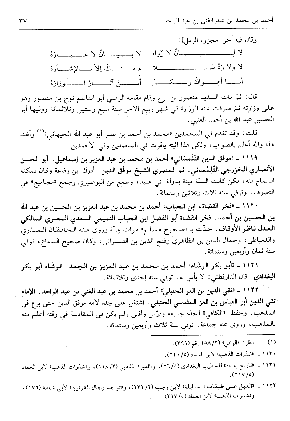 قَالَ ثمَّ مَاتَ السديد مَنْصُور بن نوح وَقَامَ مقَامه الرضي أَبُو الْقَاسِم نوح ابْن مَنْصُور وَهُوَ على وزارته ثمّ صرفت عَنهُ الوزارة فِي شهر ربيع الآخر سنة سبع وَسِتِّينَ وثلاثمائة ووليها أَبُو الْحُسَيْن عبد الله بن أَحْمد الْعُتْبِي