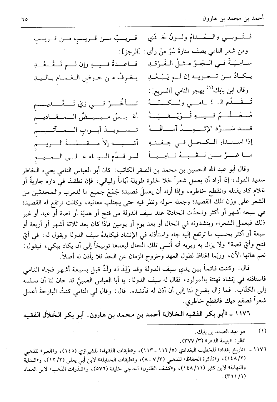 وَقَالَ ابْن بابك يهجو النامي