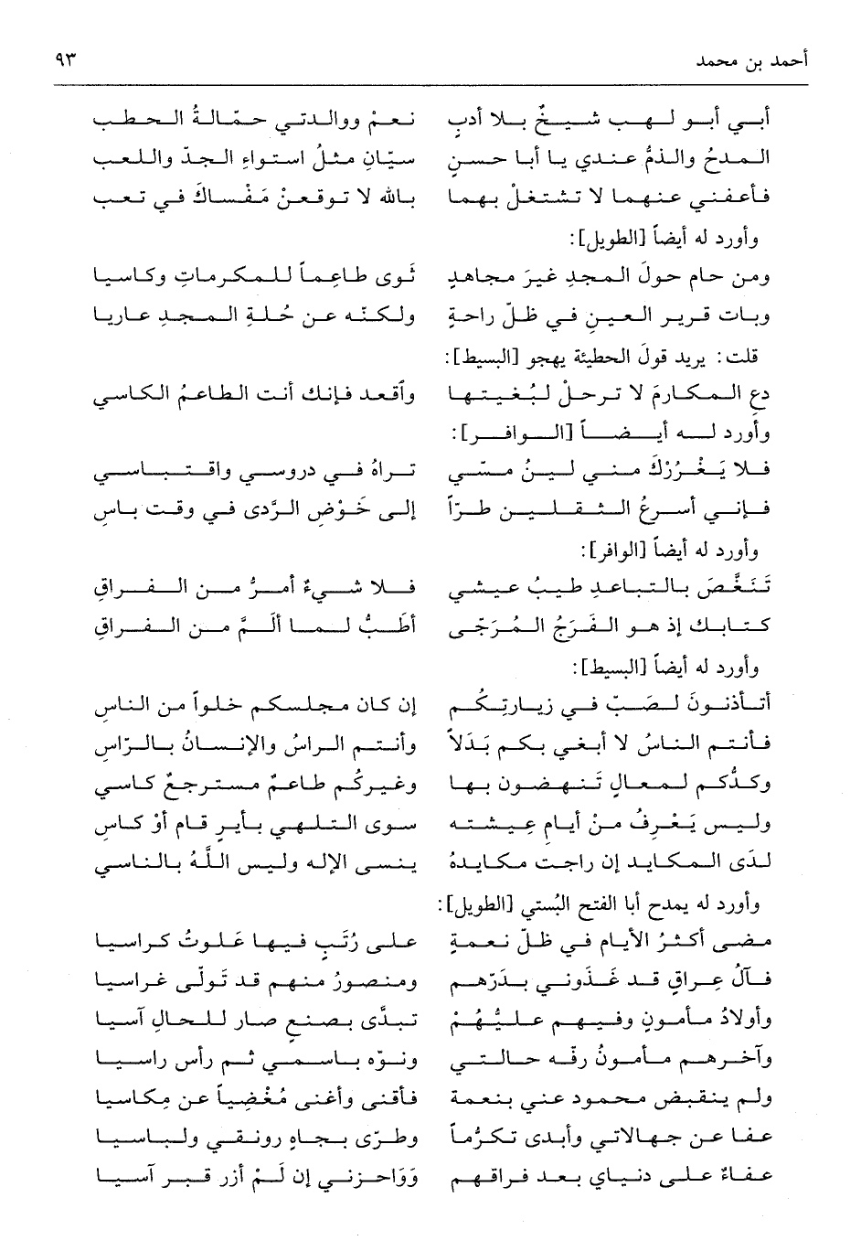 (أتأذنون لصبٍّ فِي زيارتكم ... إِن كَانَ مجلسكم خلوا من النَّاس)