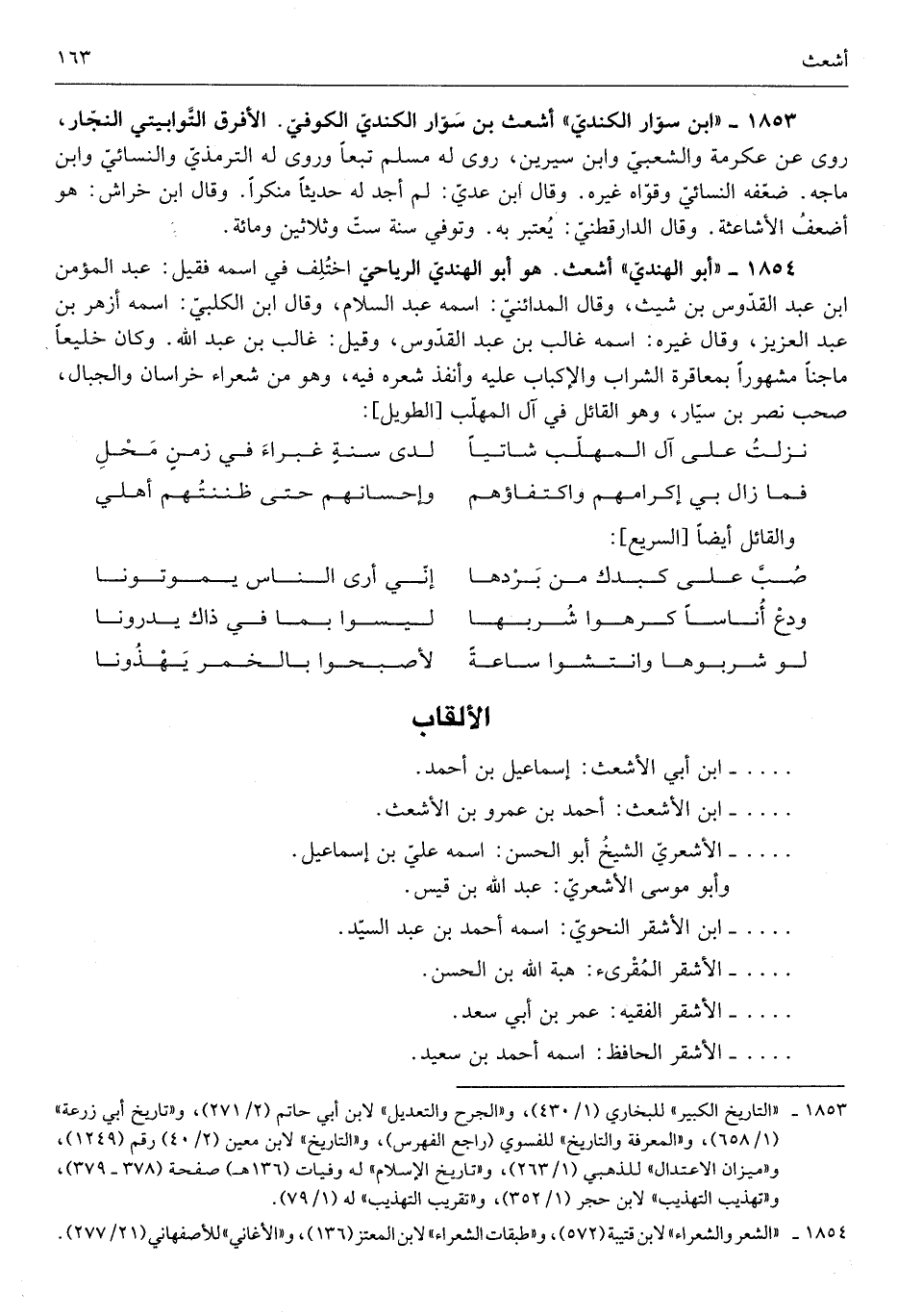 أَشْعَث هُوَ أَبُو الْهِنْدِيّ الريَاحي اخْتلف فِي اسْمه فَقيل عبد الْمُؤمن بن عبد القدوس بن شِيث وَقَالَ الْمَدَائِنِي اسْمه عبد السَّلَام وَقَالَ ابْن الْكَلْبِيّ اسْمه أَزْهَر بن عبد الْعَزِيز وَقَالَ غَيره اسْمه غَالب بن عبد القدوس وَقيل غَالب بن عبد الله وَكَانَ خليعاً مَاجِنًا مَشْهُورا بمعاقرة الشَّرَاب والإكباب عَلَيْهِ وأنفد شعره فِيهِ وَهُوَ من شعراء خُرَاسَان وَالْجِبَال صحب نصر بن سيار وَهُوَ الْقَائِل فِي آل الْمُهلب من الطَّوِيل
