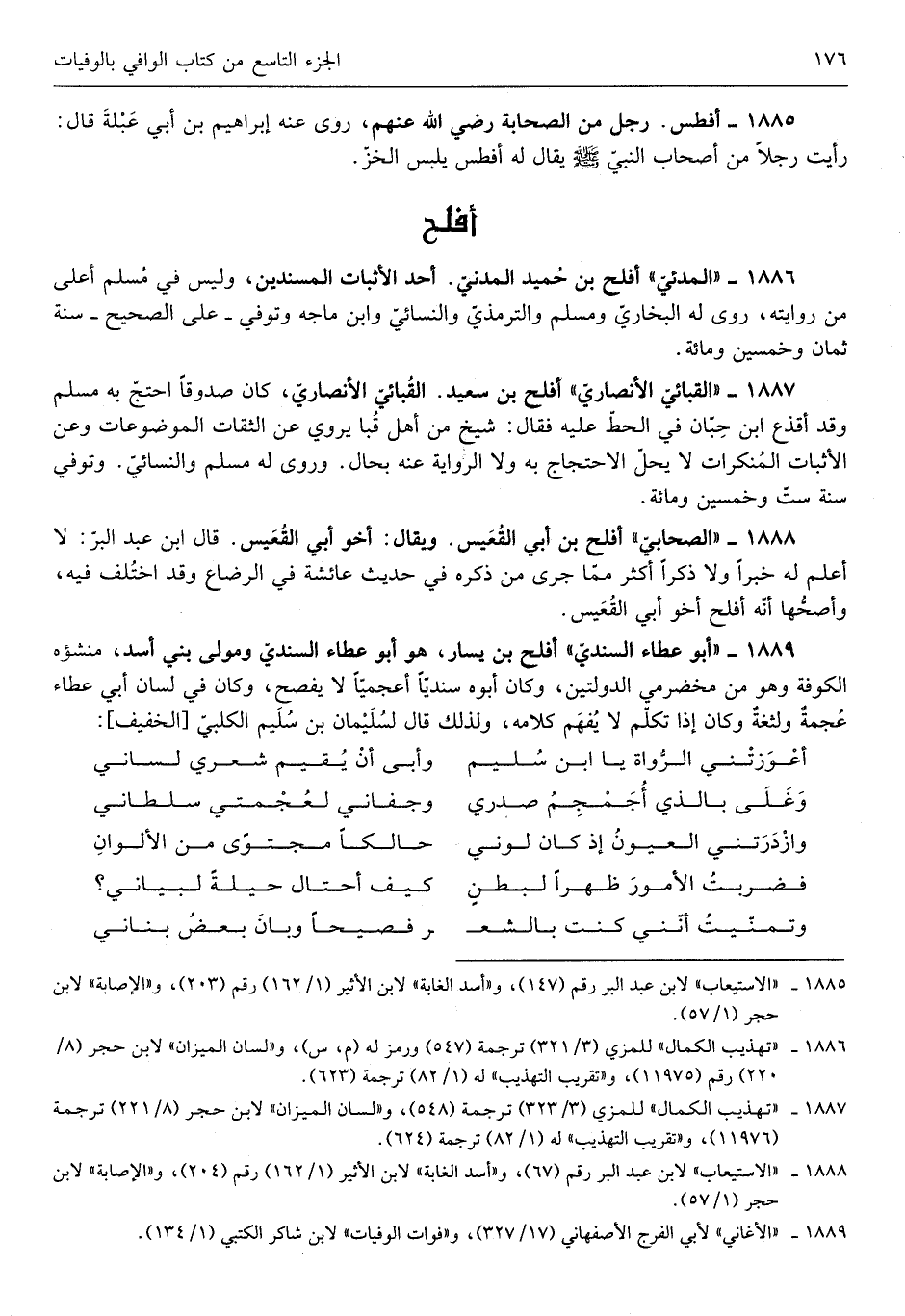 أَفْلح بن حميد الْمدنِي أحد الْأَثْبَات المسندين وَلَيْسَ فِي مُسلم أَعلَى من رِوَايَته روى لَهُ البُخَارِيّ وَمُسلم وَالتِّرْمِذِيّ وَالنَّسَائِيّ وَابْن ماجة وَتُوفِّي على الصَّحِيح سنة ثَمَان وَخمسين وَمِائَة
