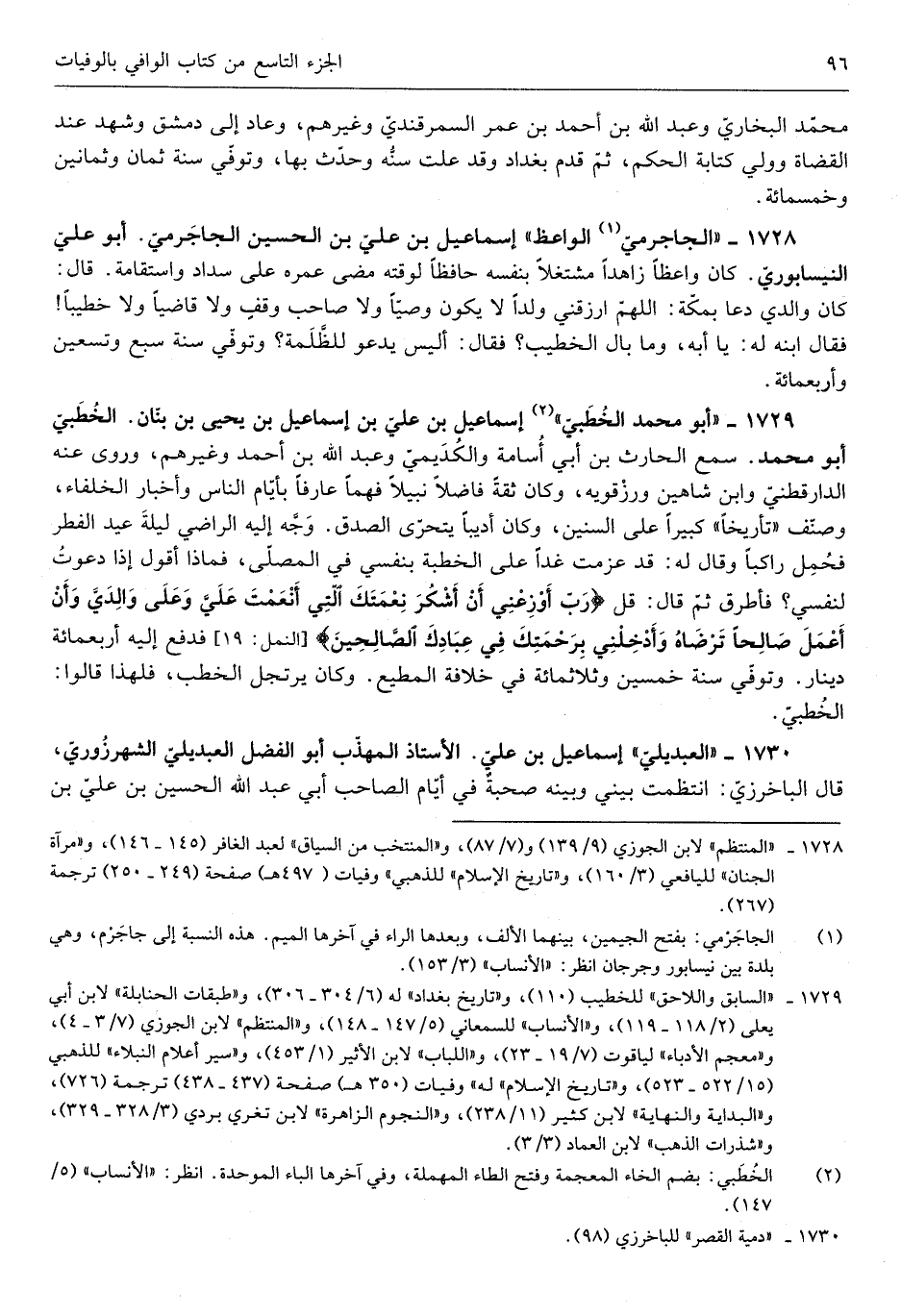 كتاب الوافي بالوفيات (اسم الجزء: 9)